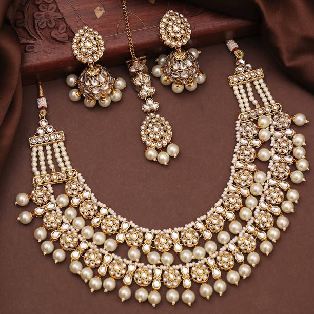 Kundan jewellery can be an intricate piece that showcases the rich heritage of Indian artistry. They can be neckpieces, earrings, maang tika, rings, bangles, and more. You can buy these jewellery pieces for several occasions like get-togethers, weddings, and parties. Such jewellery products come in numerous themes, like ethnic statement drop earrings, pearl jewellery, bead jewellery, handcrafted, oversized rings, ghungroo earrings, tassels, and a lot more. Moreover, these pieces of jewellery can offer you a vast range of colour options, designs, and materials as per your personal preferences. Besides, they are also available in materials like brass, bronze, alloy, etc. You can pick up the best-suited ornaments that suit your requirements. Kundan sets can be trendy for their versatility of styling, as they can be paired with sarees, lehengas, and even contemporary outfits to add a touch of elegance. You can also find them embellished with various gemstones like amber, amethyst, citrine, emerald, and others. Brands like Varun Creations, Vembley, Yellow Chimes, Sukkhi, Atasi International, and many more provide kundan ornaments that suit your interests. These are available in varied price ranges so that you can buy the latest kundan jewellery online and redefine your fashion statement.Check out latest collections & designs of Kundan Jewellery Sets online on Flipkart at best prices. Price list last updated on: 26-Dec-25
