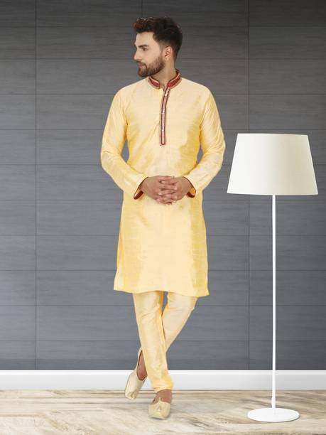 Some things never change, and one combination that never goes out of style is the classic kurta pajama. Whether it's a puja ceremony or a festival, this ethnic attire always looks good on men. Classy to dazzling, simple to glamourous - you can choose from multiple options from the exhaustive collection online. You’ll never fall short of options when it comes to kurta pajama sets for men. You can choose from multiple fabrics, colours, styles, patterns, and designs as per your requirements and tastes. Be sure to buy the correct size and fit, as a too tight or too loose kurta can ruin the look. Choose from different sizes, cuts, collars, sleeves, and more across the e-store. Choose the best kurta pyjama from popular brands like MANYAVAR, PETER ENGLAND, Hangup, Freehand, The Indian Garage Co., Sanwara, and more. You can pick up a set or shop for more than one set of men’s kurta pajamas online. You can also gift this fabulous attire to family and friends.