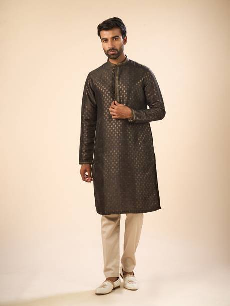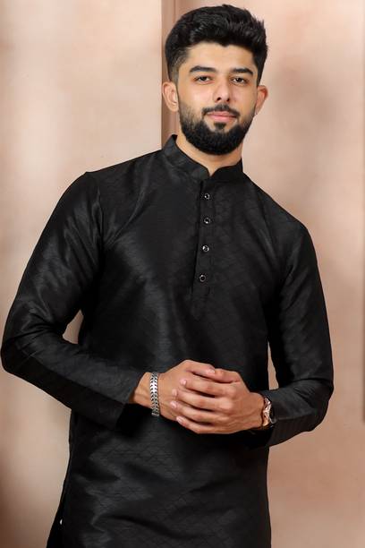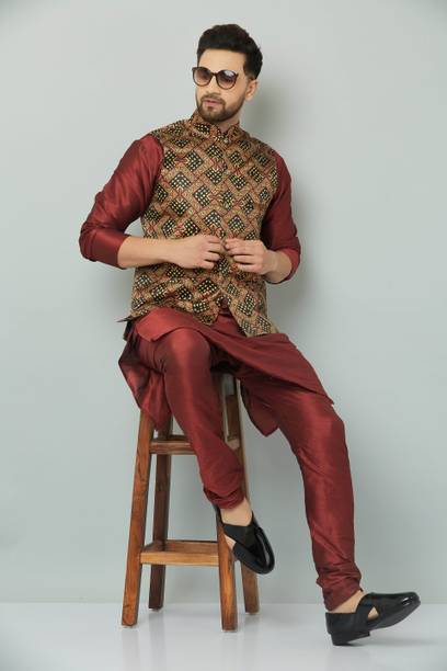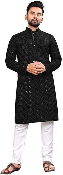 Available in contemporary colours, lengths, materials, cuts, fits, and designs, kurta pajamas for men never go out of style. They can be worn for any occasion, be it casual, formal, wedding, festive, or any other event. You can choose from different sleeve styles like short, full, three-quarter, roll-up, button-up, kimono, and more. There are kurta pyjama sets in solid colours and neutral prints and weaves for those who like to dress in an understated manner. For those who like to experiment and play with colours, there are vibrant hues with prints, like polkas, stripes, geometric, paisley, floral, batik, bandini, and many more. Kurtas with embroidery like phulkari, Kantha, Chikan Kari, kalamkari, and block printing are also some options available at the e-store. Pair the kurta pajama set with a variety of jackets, stoles, and footwear to look unique each time you wear a kurta. Brands like ABH Lifestyle, ARMAAN ETHNIC, Vastra Mania, Shahi Libas, and AD & AV are popular options from where you can check the collection of the latest kurta pajamas for men. You can browse online, check out the varieties of kurta pajamas for men available there and make your choice. The information you are reading has been last updated on 25-Dec-25.