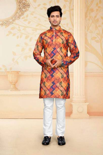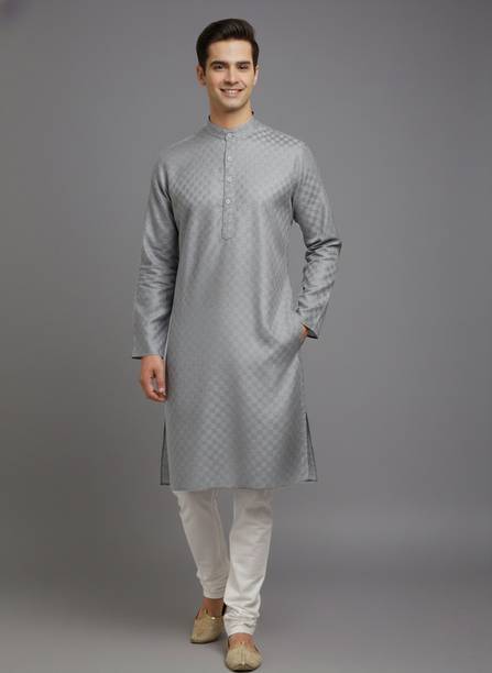 Available in contemporary colours, lengths, materials, cuts, fits, and designs, kurta pajamas for men never go out of style. They can be worn for any occasion, be it casual, formal, wedding, festive, or any other event. You can choose from different sleeve styles like short, full, three-quarter, roll-up, button-up, kimono, and more. There are kurta pyjama sets in solid colours and neutral prints and weaves for those who like to dress in an understated manner. For those who like to experiment and play with colours, there are vibrant hues with prints, like polkas, stripes, geometric, paisley, floral, batik, bandini, and many more. Kurtas with embroidery like phulkari, Kantha, Chikan Kari, kalamkari, and block printing are also some options available at the e-store. Pair the kurta pajama set with a variety of jackets, stoles, and footwear to look unique each time you wear a kurta. Brands like ABH Lifestyle, ARMAAN ETHNIC, Vastra Mania, Shahi Libas, and AD & AV are popular options from where you can check the collection of the latest kurta pajamas for men. You can browse online, check out the varieties of kurta pajamas for men available there and make your choice. The information you are reading has been last updated on 06-Jan-26.