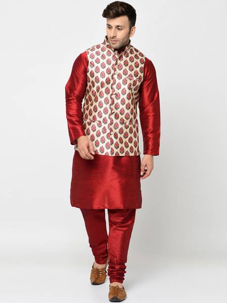Some things never change, and one combination that never goes out of style is the classic kurta pajama. Whether it's a puja ceremony or a festival, this ethnic attire always looks good on men. Classy to dazzling, simple to glamourous - you can choose from multiple options from the exhaustive collection online. You’ll never fall short of options when it comes to kurta pajama sets for men. You can choose from multiple fabrics, colours, styles, patterns, and designs as per your requirements and tastes. Be sure to buy the correct size and fit, as a too tight or too loose kurta can ruin the look. Choose from different sizes, cuts, collars, sleeves, and more across the e-store. Choose the best kurta pyjama from popular brands like MANYAVAR, PETER ENGLAND, Hangup, Freehand, The Indian Garage Co., Sanwara, and more. You can pick up a set or shop for more than one set of men’s kurta pajamas online. You can also gift this fabulous attire to family and friends.