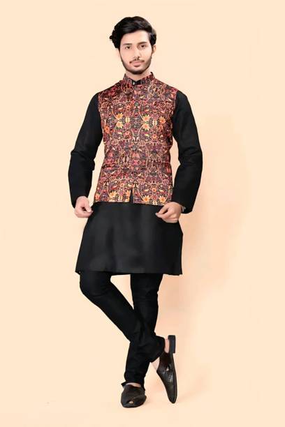 Kurtas with jackets are a perfect style statement for women who love traditional fashion. These are available as a traditional kurta, an beautifully patterned jacket, and ethnic bottom wear to complete the look. You can get these in various sizes ranging from XS to 7XL. They are available as Anarkali, flared, kaftan, frontslit, gowns, trail cuts, etc. Adorn yourself in these latest kurtas with jackets with tribal prints, dye, abstract, embellished, applique, embroidered, floral prints, polka dots, striped, and more. You can wear these to your workplace, marriage ceremonies, family gatherings, etc. Choose from florals, block prints, sequinned kurta sets, classy chikankari embroidery sets, geometric prints, and tropical prints. These traditional garments are ideal for your daily ethnic wear and maternity wear. They are available in fabrics like lace cotton, jacquard, rayon, chiffon, georgette, Chanderi, muslin, etc. Choose your ethnic jackets from ankle length, above the knee, calf-length, hip length, and more. You can buy these sets in beautiful colours such as dark green, red, black, blue, yellow, and others. These kurtas with jackets are available as a set for your unique daily looks. Check out some well-known brands like shifa fashion, jaipurite, W, Biba, Lycrofest, etc., and order today. The information you are reading has been last updated on 04-Mar-26.
