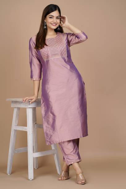 Are you looking for classic and beautiful apparel to flaunt at events? Then check out the classic kurti with pant set. It offers a chic look, with a three-piece set that generally consists of a traditional kurti, a pair of pants, and a dupatta. You can wear these to marriage ceremonies, college events, offices, religious festivals, family gatherings, and more. You can also wear it inside your home as loungewear or as casual attire to nearby places. It is an all-year look that can make an individual stand out with their unique style preference. Check out the latest kurti and pants in fantastic combo sets of angarkha and dhoti pants, ethnic jacket-kurta and palazzo set, salwar and dupatta, top and dhoti pants set, traditional gowns, ethnic dresses sets, and more. These are available in soft and cosy poly satin, art silk, cotton-rayon blend, georgette chiffon blend, net, muslin, and many other popular fabrics. You can wear these with jhumkas, necklaces, bangles, jewel-encrusted chokers, bindis, etc. Find your favourite kurti and pants set in vibrant shades of dark green, cream, silver, purple, blue, maroon, etc. Browse through brands like PINK WISHES EXPORT, Jaipur Kurti, Aurelia, Stylum, aadicraft, etc. The information you are reading has been last updated on 30-Oct-25.