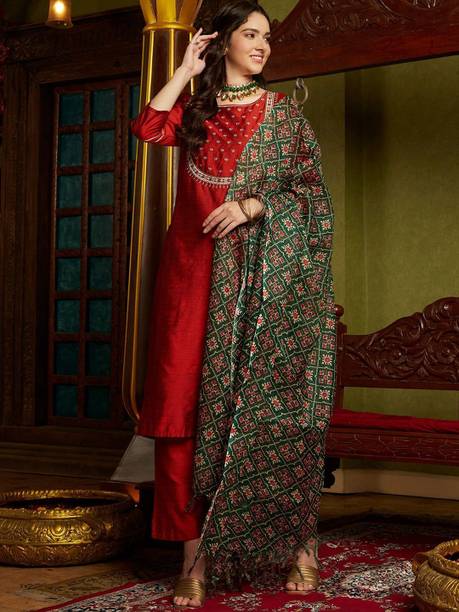 Are you looking for classic and beautiful apparel to flaunt at events? Then check out the classic kurti with pant set. It offers a chic look, with a three-piece set that generally consists of a traditional kurti, a pair of pants, and a dupatta. You can wear these to marriage ceremonies, college events, offices, religious festivals, family gatherings, and more. You can also wear it inside your home as loungewear or as casual attire to nearby places. It is an all-year look that can make an individual stand out with their unique style preference. Check out the latest kurti and pants in fantastic combo sets of angarkha and dhoti pants, ethnic jacket-kurta and palazzo set, salwar and dupatta, top and dhoti pants set, traditional gowns, ethnic dresses sets, and more. These are available in soft and cosy poly satin, art silk, cotton-rayon blend, georgette chiffon blend, net, muslin, and many other popular fabrics. You can wear these with jhumkas, necklaces, bangles, jewel-encrusted chokers, bindis, etc. Find your favourite kurti and pants set in vibrant shades of dark green, cream, silver, purple, blue, maroon, etc. Browse through brands like PINK WISHES EXPORT, Jaipur Kurti, Aurelia, Stylum, aadicraft, etc. The information you are reading has been last updated on 13-Jan-26.