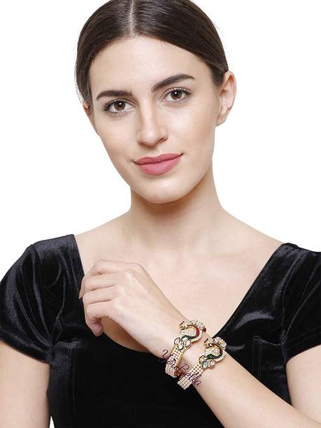 Boost your appearance and make a strong style statement with exciting Kangan choices available online. These are traditional Indian bangles that can come in handy for you on a plethora of occasions. They are made and crafted with high-quality materials, including dori, metal, oxidised silver, rudraksha, copper, fabric, glass, and more. The extensive range of armlets, kada, kalire, bangles, bracelets, and chudas are capable of adding a touch of elegance to any outfit. Adorned with precious gemstones like diamonds, emeralds, moonstones, rubies, topaz, and pearls, each piece showcases timeless beauty and sophistication. Based on your preferences, you can go with the plain ones or have the ones with intricate designs. A number of brands, such as Carva, Jaanvi, Princee, Rose Petals, Royal Bangles, etc., offer these bangles online. So, explore the various types of latest and trendy bangles and place your order from the comfort of your home. With these bangles being available in various shades, you can easily find options that appeal to your aesthetic sensibilities. Check the product descriptions of specific bangles to know more about their price rates, features, care techniques, and so on. Subsequently, you can add to the cart the ones that suit you the best and buy Kangans without any hassle.