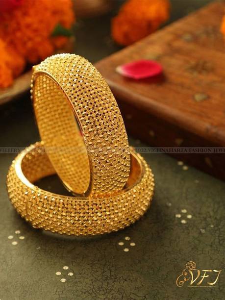 Boost your appearance and make a strong style statement with exciting Kangan choices available online. These are traditional Indian bangles that can come in handy for you on a plethora of occasions. They are made and crafted with high-quality materials, including dori, metal, oxidised silver, rudraksha, copper, fabric, glass, and more. The extensive range of armlets, kada, kalire, bangles, bracelets, and chudas are capable of adding a touch of elegance to any outfit. Adorned with precious gemstones like diamonds, emeralds, moonstones, rubies, topaz, and pearls, each piece showcases timeless beauty and sophistication. Based on your preferences, you can go with the plain ones or have the ones with intricate designs. A number of brands, such as Carva, Jaanvi, Princee, Rose Petals, Royal Bangles, etc., offer these bangles online. So, explore the various types of latest and trendy bangles and place your order from the comfort of your home. With these bangles being available in various shades, you can easily find options that appeal to your aesthetic sensibilities. Check the product descriptions of specific bangles to know more about their price rates, features, care techniques, and so on. Subsequently, you can add to the cart the ones that suit you the best and buy Kangans without any hassle.