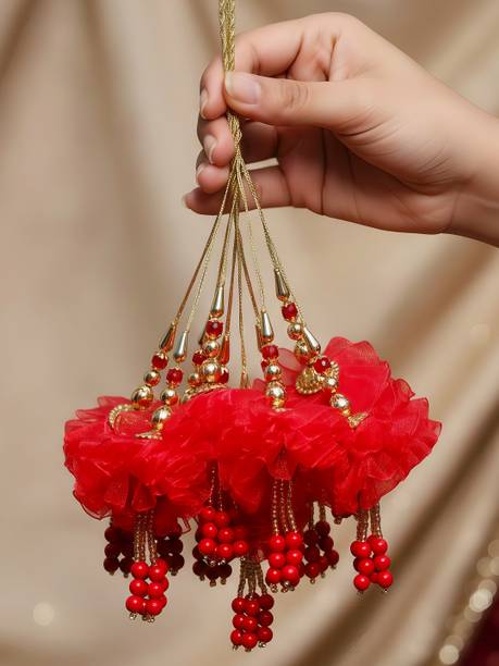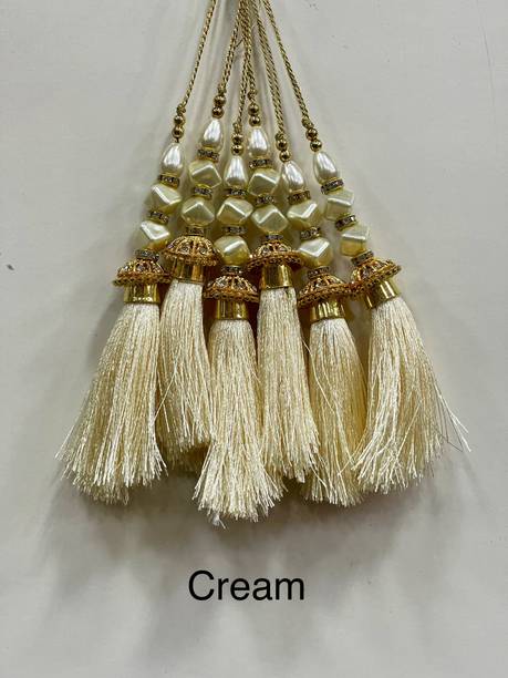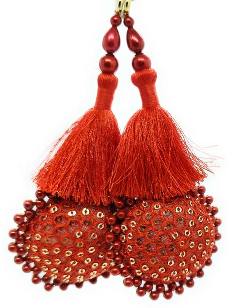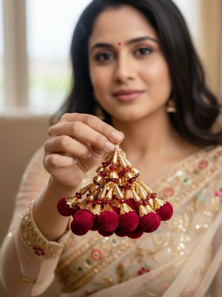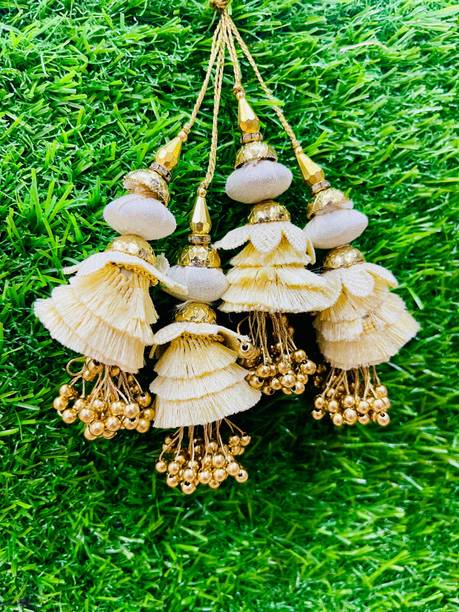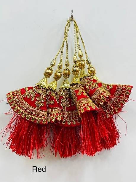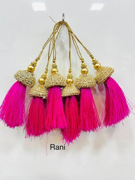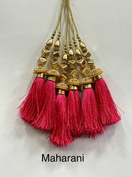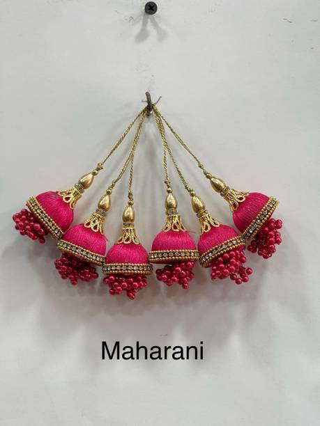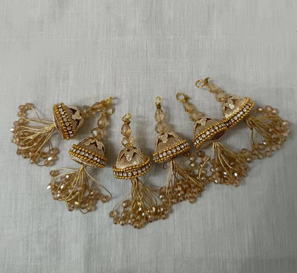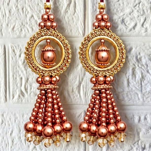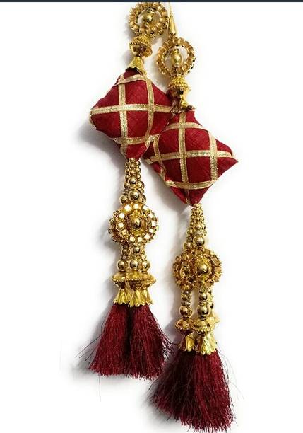 You can look for latkan designs online from various online brands such as Bhavya Sale, Indo Star Creations, Siddhi Vinayak, Tradition Golden, and many more. Try out the multi-coloured Fabric & Lace latkan design that goes best with sarees and the latkan collection from FirstDesign that comes in several traditional colours such as pink and orange. You can also take a look at the latkan designs from Dadeals that come in a set of interesting colour combinations.