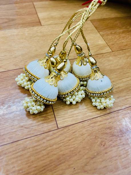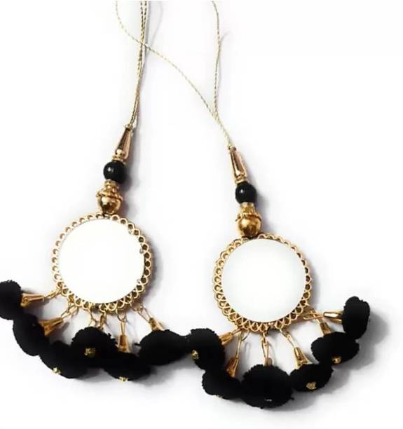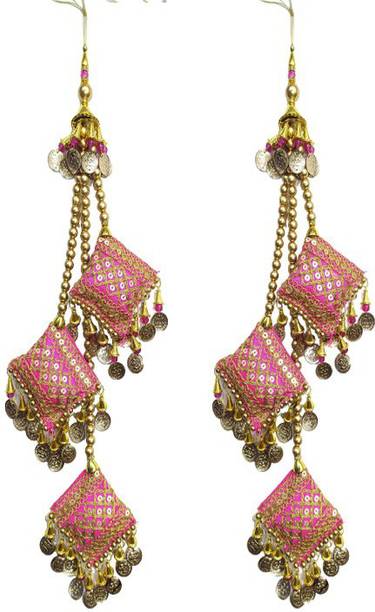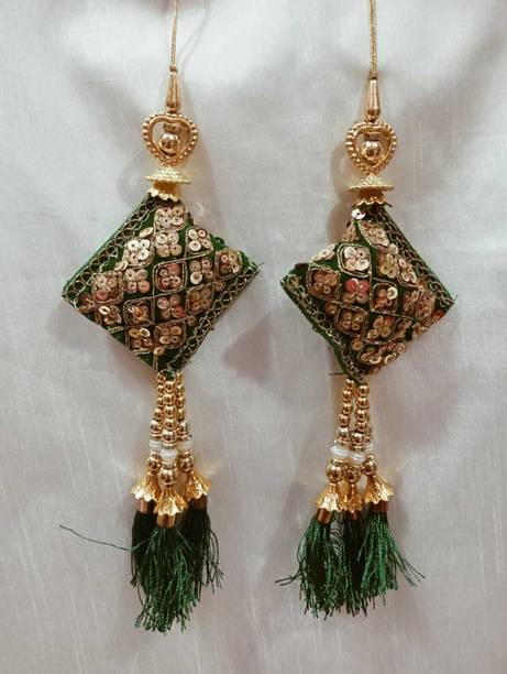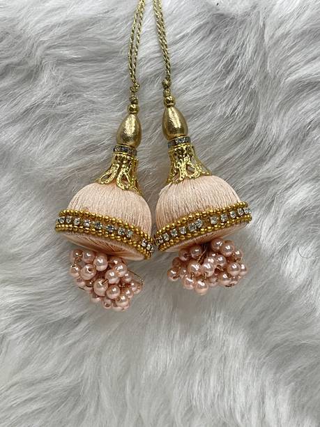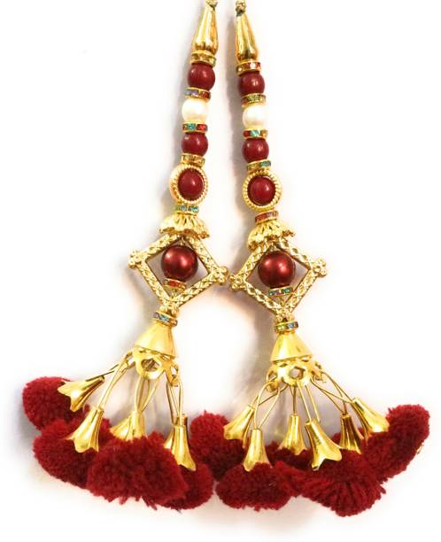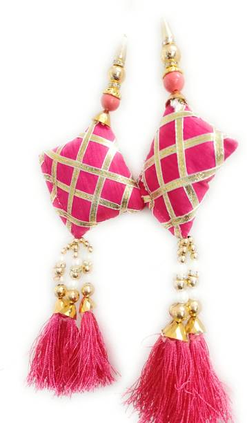 You can look for latkan designs online from various online brands such as Bhavya Sale, Indo Star Creations, Siddhi Vinayak, Tradition Golden, and many more. Try out the multi-coloured Fabric & Lace latkan design that goes best with sarees and the latkan collection from FirstDesign that comes in several traditional colours such as pink and orange. You can also take a look at the latkan designs from Dadeals that come in a set of interesting colour combinations.
