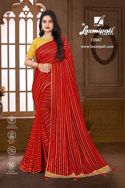 Sarees have been an integral part of traditional Indian attire since time immemorial. However, shopping for sarees can be daunting. Here is a wide range of Laxmipati sarees to choose from to make your saree shopping experience a breeze. Explore chiffon sarees that are light and easy to wear. Plus, they fall beautifully into your silhouette and accentuate your curves. You can wear them all year round. Pick georgette sarees for their elegance and easy-to-drape quality. Flaunt the beautiful finish. These sarees are light and comfortable. Wear them for long periods of time with ease any time of the year. Choose from a variety of colours available online. You can go for soothing light shades or dark and bright ones. Reflect beauty and freshness by wearing florals. The drape's gorgeous abstract patterned prints will help you feel and express yourself. Look absolutely stunning wearing sarees with gorgeous motifs throughout the drape. Beautiful borders add to the look of ethnic wear. These elegant sarees are ideal for wearing to parties and the office. Amp up the look by teaming your favourite saree with a pair of danglers and high heels. Browse a variety of Laxmipati sarees, order online, and make a statement in the chic draping.