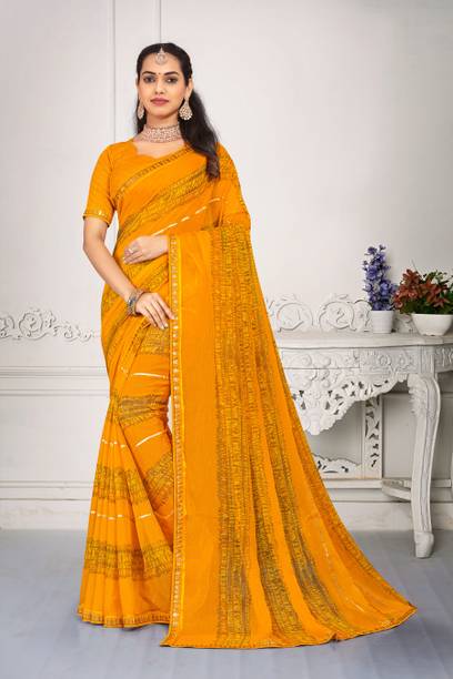 Sarees have been an integral part of traditional Indian attire since time immemorial. However, shopping for sarees can be daunting. Here is a wide range of Laxmipati sarees to choose from to make your saree shopping experience a breeze. Explore chiffon sarees that are light and easy to wear. Plus, they fall beautifully into your silhouette and accentuate your curves. You can wear them all year round. Pick georgette sarees for their elegance and easy-to-drape quality. Flaunt the beautiful finish. These sarees are light and comfortable. Wear them for long periods of time with ease any time of the year. Choose from a variety of colours available online. You can go for soothing light shades or dark and bright ones. Reflect beauty and freshness by wearing florals. The drape's gorgeous abstract patterned prints will help you feel and express yourself. Look absolutely stunning wearing sarees with gorgeous motifs throughout the drape. Beautiful borders add to the look of ethnic wear. These elegant sarees are ideal for wearing to parties and the office. Amp up the look by teaming your favourite saree with a pair of danglers and high heels. Browse a variety of Laxmipati sarees, order online, and make a statement in the chic draping.