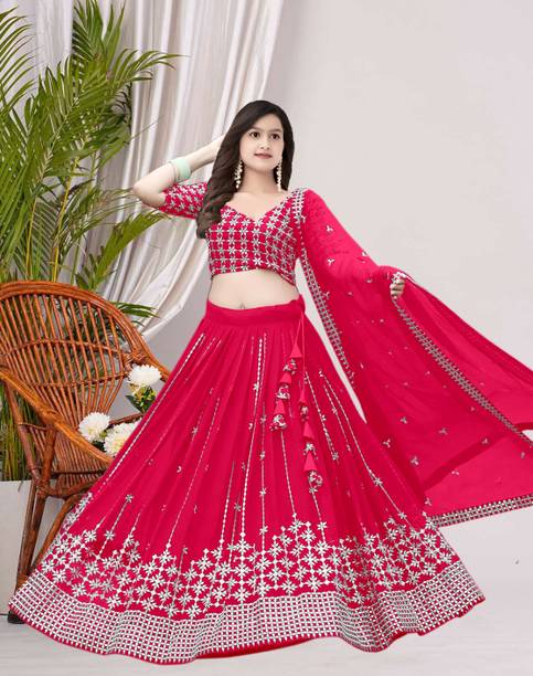 With a wide range of collections and limitless choices of ethnic wear available in vibrant colours and styles, purchasing lehenga for 12 year girls’ has become challenging. Made from fabrics like velvet, cotton, silk, khadi, cambric, and net, these gorgeous outfits can be worn for various occasions like weddings, festivals, and parties. For a festival or a wedding, opt for a heavily embellished lehenga choli with a net dupatta to flaunt an elegant and glamorous look. Young girls enjoy dressing up, and a beautiful set of lehenga choli is a favourite pick among them. Designed in patterns like paisley, houndstooth, floral, self-design, geometric print, embroidered, and embellished, these outfits come in different styles and sleeve lengths. Natural fabrics like cotton, linen, and khadi are suitable to be worn in warmer weather, whereas silk, velvet, and wool blend fabrics are apt for cold seasons. An intricately designed lehenga can be worn with crop tops, kurtas, or cholis. Browse online the latest lehengas for 12 year girls’ from popular brands like WTWC FAB, Ethvilla, PILUDI, Kedar Fab, The Fashion Prime, and many more. Go through reviews and compare the prices to make an informed decision. Shop for lehengas for 12 year girls’ online and get them delivered directly to your doorstep. The information you are reading has been last updated on 04-Oct-25.