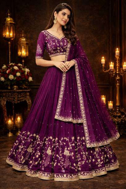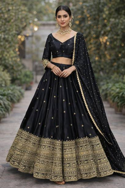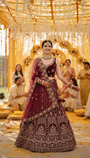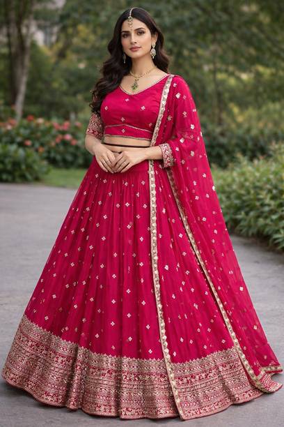 With so many styles and patterns available online, finding a dazzling lehenga for engagement is easy. Made with a variety of fabrics like silk, satin, net, and more., these lehengas are available in vibrant colours and patterns that will make you stand out on your special day. These are usually semi-stitched and may come in varying sleeve lengths and dupatta. Browse the latest lehengas for engagement from popular brands like FASHION BASKET, OceanZone Fashion, Jinnar, Vozica, Mahi Creation, and many more. The A-line cuts are popular with ladies of all age groups and suit all body types. The drape is designed to have a flare and flowy look. These are best paired for plain and colour contrasting crop tops for a minimalist look. The ruffled or multi-layered skirts have a unique look as these create volume and elegance. These lehenga types are suited for an apple body shape. They accentuate the shoulder and create an illusion of an hourglass figure. The fit and flare styles that have floral and embroidery prints can be worn for day events. The heavy embellishments like sequence, stonework, etc., on pure silk cholis, are apt for a bridal ensemble or engagement party. You can shop for lehengas for engagement online and add them to the cart to enjoy doorstep delivery. The information you are reading has been last updated on 18-Mar-26.