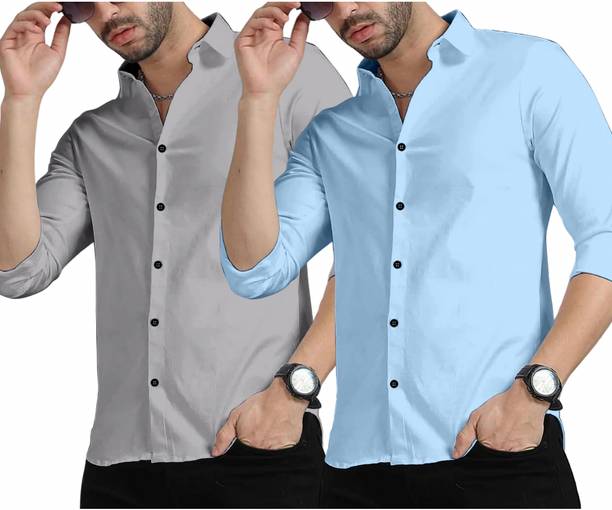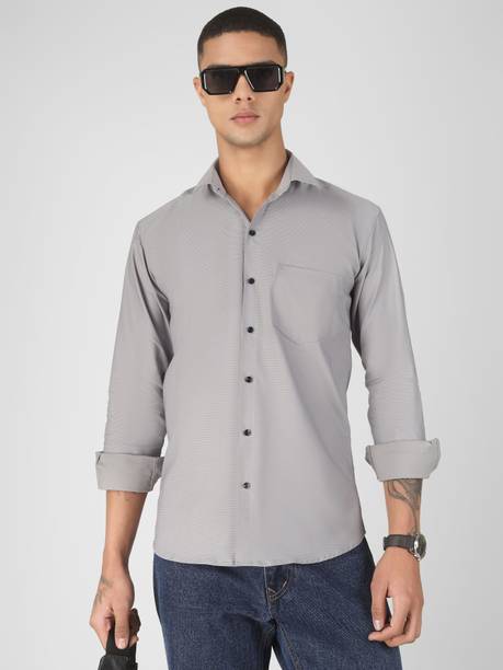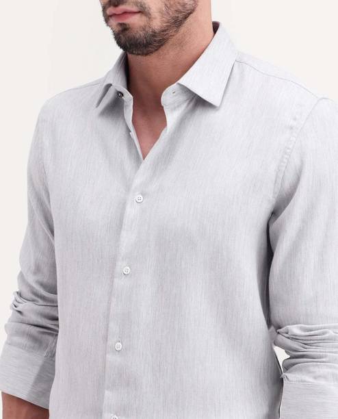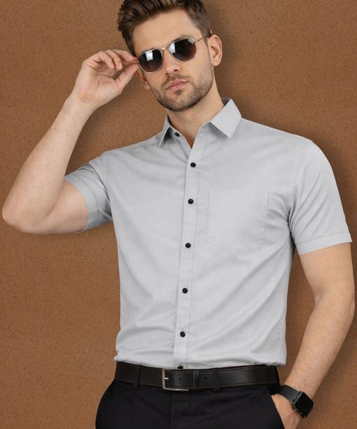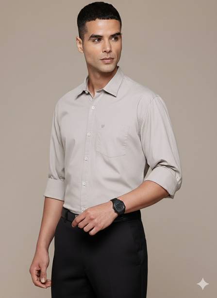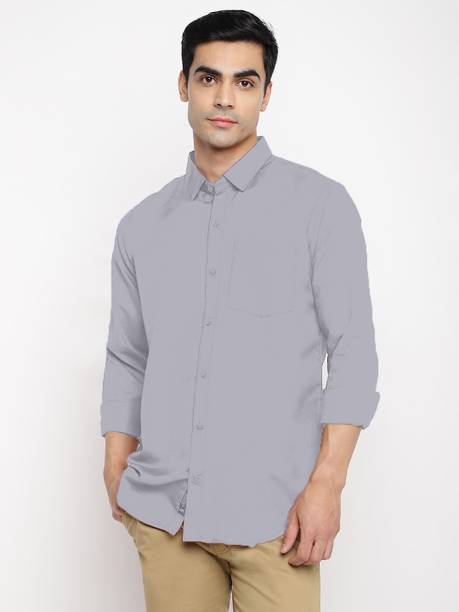 Light grey shirts for men are an elegant option because the monochrome colour goes well with any colour of bottom clothing. The overall look is well blended when coupled with any pants like formal trousers or semi-casual jeans. Top the look with some sleek formal shoes or sneakers for a formidable day ahead. The shirts are an excellent selection of formal, casual, or office attire. Check out the different online themes available in the shirts, like nautical vibes, bold stripes, simple shades, or party-ready. Scroll through the different patterns available like colour block, embroidered, striped, chequered, solid, etc. There are different fits available like super slim, regular, slim and tailored in the shirts that may be chosen. Check the sleeves before buying the shirts, like full sleeves, half, short, three-fourths, etc. The fabric desired, like pure cotton, poly cotton, cotton silk, cotton lycra, lycra blend, cotton linen, cotton blend, etc., can be chosen before adding the product to the cart. It is appropriate to choose a collar from the mandarin, club, curved, double, classic, button down, cut away, hood, slim, etc. Buy light grey shirts from brands like Arrow Sport, James & Warne, London Fog, Kuons Avenue, Just Black, etc. Order a suitably fitting shirt online from the comfort of your home.
