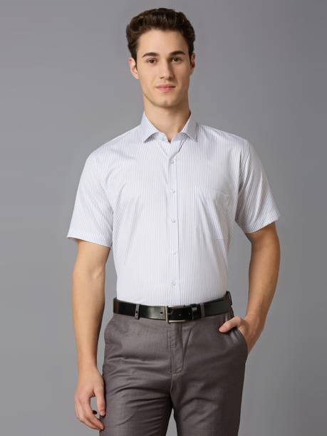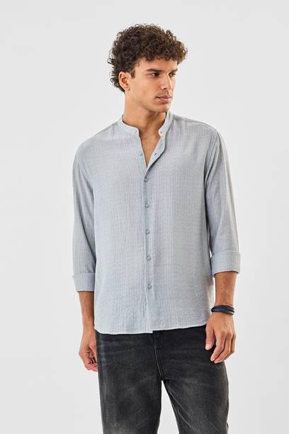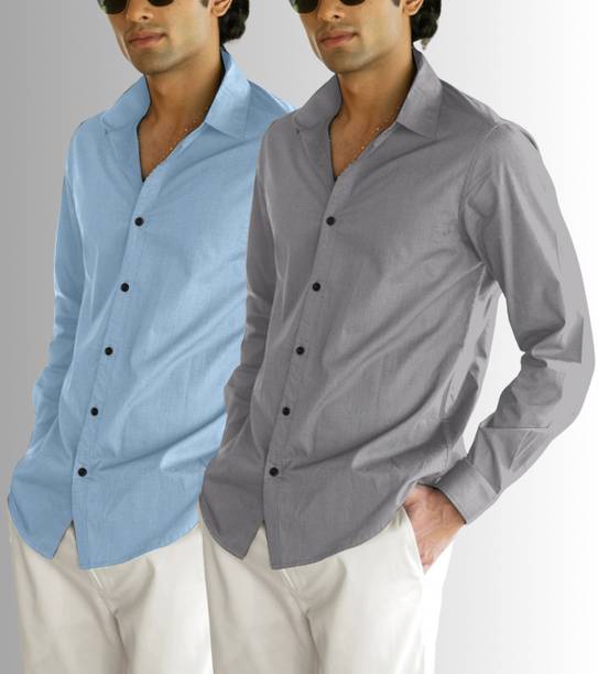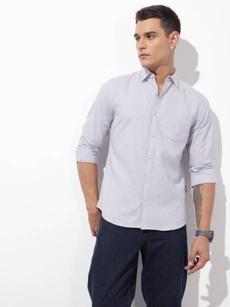 Light grey shirts for men are an elegant option because the monochrome colour goes well with any colour of bottom clothing. The overall look is well blended when coupled with any pants like formal trousers or semi-casual jeans. Top the look with some sleek formal shoes or sneakers for a formidable day ahead. The shirts are an excellent selection of formal, casual, or office attire. Check out the different online themes available in the shirts, like nautical vibes, bold stripes, simple shades, or party-ready. Scroll through the different patterns available like colour block, embroidered, striped, chequered, solid, etc. There are different fits available like super slim, regular, slim and tailored in the shirts that may be chosen. Check the sleeves before buying the shirts, like full sleeves, half, short, three-fourths, etc. The fabric desired, like pure cotton, poly cotton, cotton silk, cotton lycra, lycra blend, cotton linen, cotton blend, etc., can be chosen before adding the product to the cart. It is appropriate to choose a collar from the mandarin, club, curved, double, classic, button down, cut away, hood, slim, etc. Buy light grey shirts from brands like Arrow Sport, James & Warne, London Fog, Kuons Avenue, Just Black, etc. Order a suitably fitting shirt online from the comfort of your home.