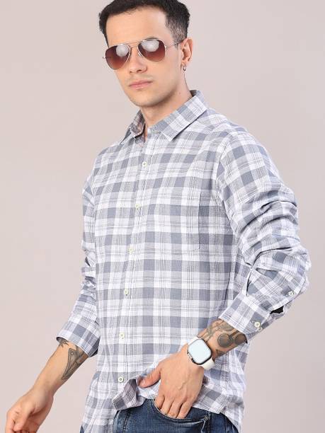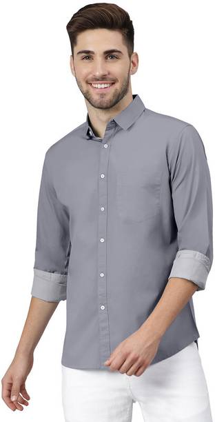 Light grey shirts for men are an elegant option because the monochrome colour goes well with any colour of bottom clothing. The overall look is well blended when coupled with any pants like formal trousers or semi-casual jeans. Top the look with some sleek formal shoes or sneakers for a formidable day ahead. The shirts are an excellent selection of formal, casual, or office attire. Check out the different online themes available in the shirts, like nautical vibes, bold stripes, simple shades, or party-ready. Scroll through the different patterns available like colour block, embroidered, striped, chequered, solid, etc. There are different fits available like super slim, regular, slim and tailored in the shirts that may be chosen. Check the sleeves before buying the shirts, like full sleeves, half, short, three-fourths, etc. The fabric desired, like pure cotton, poly cotton, cotton silk, cotton lycra, lycra blend, cotton linen, cotton blend, etc., can be chosen before adding the product to the cart. It is appropriate to choose a collar from the mandarin, club, curved, double, classic, button down, cut away, hood, slim, etc. Buy light grey shirts from brands like Arrow Sport, James & Warne, London Fog, Kuons Avenue, Just Black, etc. Order a suitably fitting shirt online from the comfort of your home.