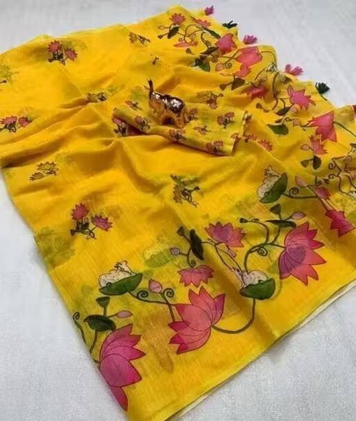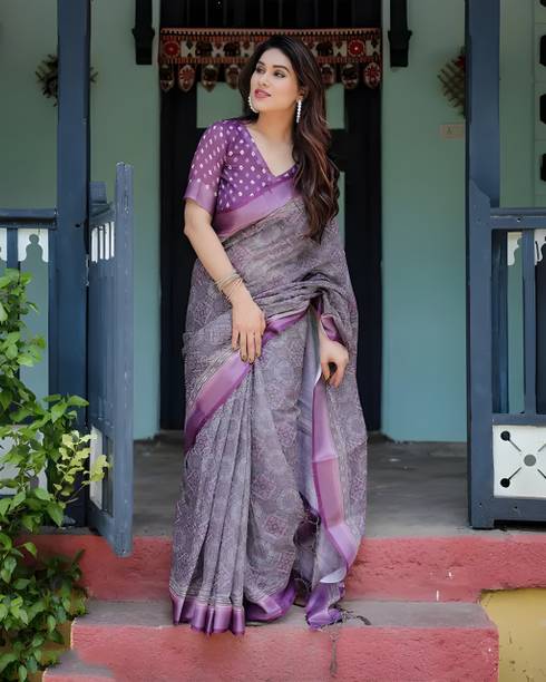 Linen Sarees are a popularly sought-after variant of the traditional saree, a garment worn by Indian women. Despite having traditional roots, this elegant outfit has inspired designers and runway fashion worldwide. Linen is a desired fabric owing to its lightweight, making it a comfortable and easily wearable fabric. It is suitable for Indian weather as it allows easy movement of air. It also has sweat-absorbing properties. Sarees made of linen fabric drape well because of their texture, giving you an elegant and ethereal look. Due to their versatility, sarees are worn at various events and occasions – formal dinners, family functions, cocktail parties, and weddings. You simply have to play around with different styles and jewellery to create the perfect ensemble suitable for the event. You can purchase linen sarees for special occasions like weddings, anniversaries, festivals, and birthdays or wear them to your office. Pure linen sarees can also be a thoughtful and excellent gift to give your loved ones. You may take your pick from any of the various brands available online such as Kara, Swastim, Taanti, Pink Floral, and Dakshin Grandeur, to name a few. You can shop for linen sarees online in colours and patterns of your choice. Price list last updated on 06-Oct-25.