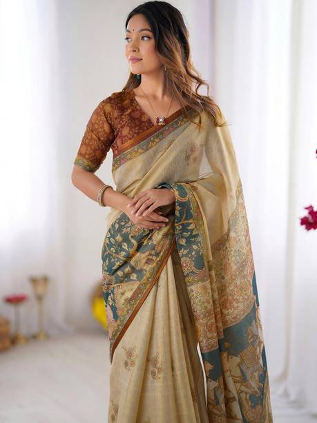 Linen Sarees are a popularly sought-after variant of the traditional saree, a garment worn by Indian women. Despite having traditional roots, this elegant outfit has inspired designers and runway fashion worldwide. Linen is a desired fabric owing to its lightweight, making it a comfortable and easily wearable fabric. It is suitable for Indian weather as it allows easy movement of air. It also has sweat-absorbing properties. Sarees made of linen fabric drape well because of their texture, giving you an elegant and ethereal look. Due to their versatility, sarees are worn at various events and occasions – formal dinners, family functions, cocktail parties, and weddings. You simply have to play around with different styles and jewellery to create the perfect ensemble suitable for the event. You can purchase linen sarees for special occasions like weddings, anniversaries, festivals, and birthdays or wear them to your office. Pure linen sarees can also be a thoughtful and excellent gift to give your loved ones. You may take your pick from any of the various brands available online such as Kara, Swastim, Taanti, Pink Floral, and Dakshin Grandeur, to name a few. You can shop for linen sarees online in colours and patterns of your choice. Price list last updated on 27-Dec-25.
