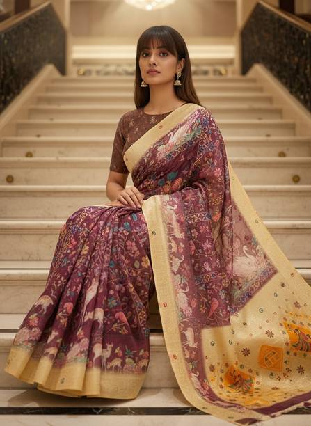 Linen Sarees are a popularly sought-after variant of the traditional saree, a garment worn by Indian women. Despite having traditional roots, this elegant outfit has inspired designers and runway fashion worldwide. Linen is a desired fabric owing to its lightweight, making it a comfortable and easily wearable fabric. It is suitable for Indian weather as it allows easy movement of air. It also has sweat-absorbing properties. Sarees made of linen fabric drape well because of their texture, giving you an elegant and ethereal look. Due to their versatility, sarees are worn at various events and occasions – formal dinners, family functions, cocktail parties, and weddings. You simply have to play around with different styles and jewellery to create the perfect ensemble suitable for the event. You can purchase linen sarees for special occasions like weddings, anniversaries, festivals, and birthdays or wear them to your office. Pure linen sarees can also be a thoughtful and excellent gift to give your loved ones. You may take your pick from any of the various brands available online such as Kara, Swastim, Taanti, Pink Floral, and Dakshin Grandeur, to name a few. You can shop for linen sarees online in colours and patterns of your choice. Price list last updated on 07-Dec-25.