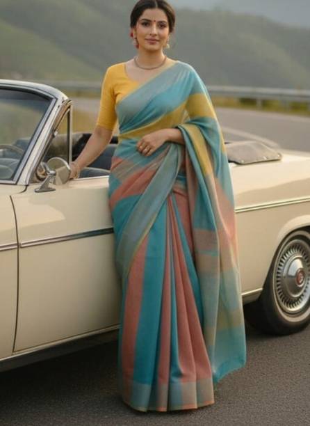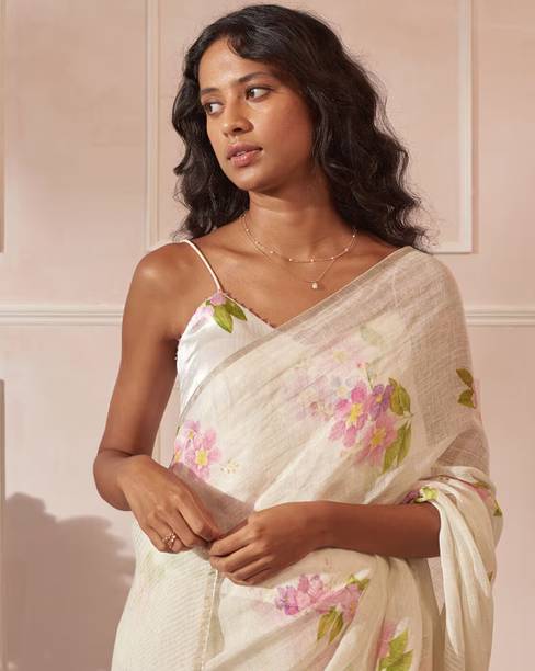 Linen Sarees are a popularly sought-after variant of the traditional saree, a garment worn by Indian women. Despite having traditional roots, this elegant outfit has inspired designers and runway fashion worldwide. Linen is a desired fabric owing to its lightweight, making it a comfortable and easily wearable fabric. It is suitable for Indian weather as it allows easy movement of air. It also has sweat-absorbing properties. Sarees made of linen fabric drape well because of their texture, giving you an elegant and ethereal look. Due to their versatility, sarees are worn at various events and occasions – formal dinners, family functions, cocktail parties, and weddings. You simply have to play around with different styles and jewellery to create the perfect ensemble suitable for the event. You can purchase linen sarees for special occasions like weddings, anniversaries, festivals, and birthdays or wear them to your office. Pure linen sarees can also be a thoughtful and excellent gift to give your loved ones. You may take your pick from any of the various brands available online such as Kara, Swastim, Taanti, Pink Floral, and Dakshin Grandeur, to name a few. You can shop for linen sarees online in colours and patterns of your choice. Price list last updated on 15-Apr-26.