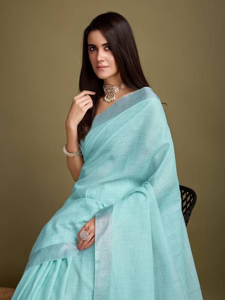 Linen Sarees are a popularly sought-after variant of the traditional saree, a garment worn by Indian women. Despite having traditional roots, this elegant outfit has inspired designers and runway fashion worldwide. Linen is a desired fabric owing to its lightweight, making it a comfortable and easily wearable fabric. It is suitable for Indian weather as it allows easy movement of air. It also has sweat-absorbing properties. Sarees made of linen fabric drape well because of their texture, giving you an elegant and ethereal look. Due to their versatility, sarees are worn at various events and occasions – formal dinners, family functions, cocktail parties, and weddings. You simply have to play around with different styles and jewellery to create the perfect ensemble suitable for the event. You can purchase linen sarees for special occasions like weddings, anniversaries, festivals, and birthdays or wear them to your office. Pure linen sarees can also be a thoughtful and excellent gift to give your loved ones. You may take your pick from any of the various brands available online such as Kara, Swastim, Taanti, Pink Floral, and Dakshin Grandeur, to name a few. You can shop for linen sarees online in colours and patterns of your choice. Price list last updated on 09-Oct-25.
