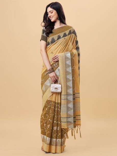Linen Sarees are a popularly sought-after variant of the traditional saree, a garment worn by Indian women. Despite having traditional roots, this elegant outfit has inspired designers and runway fashion worldwide. Linen is a desired fabric owing to its lightweight, making it a comfortable and easily wearable fabric. It is suitable for Indian weather as it allows easy movement of air. It also has sweat-absorbing properties. Sarees made of linen fabric drape well because of their texture, giving you an elegant and ethereal look. Due to their versatility, sarees are worn at various events and occasions – formal dinners, family functions, cocktail parties, and weddings. You simply have to play around with different styles and jewellery to create the perfect ensemble suitable for the event. You can purchase linen sarees for special occasions like weddings, anniversaries, festivals, and birthdays or wear them to your office. Pure linen sarees can also be a thoughtful and excellent gift to give your loved ones. You may take your pick from any of the various brands available online such as Kara, Swastim, Taanti, Pink Floral, and Dakshin Grandeur, to name a few. You can shop for linen sarees online in colours and patterns of your choice. Price list last updated on 10-Oct-25.