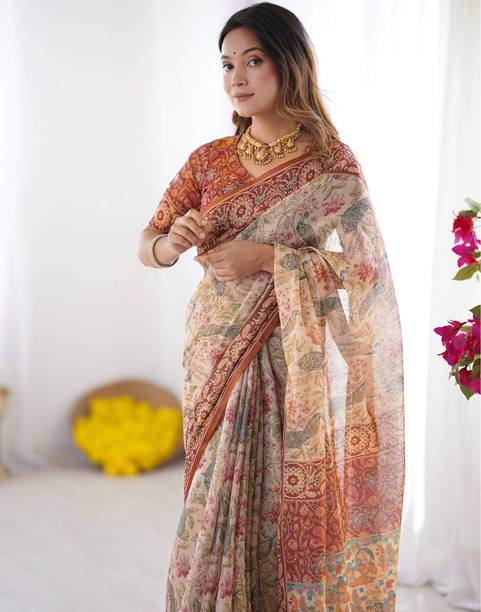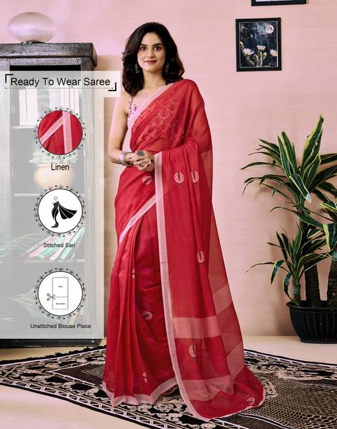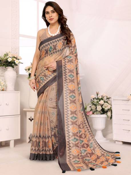 Linen Sarees are a popularly sought-after variant of the traditional saree, a garment worn by Indian women. Despite having traditional roots, this elegant outfit has inspired designers and runway fashion worldwide. Linen is a desired fabric owing to its lightweight, making it a comfortable and easily wearable fabric. It is suitable for Indian weather as it allows easy movement of air. It also has sweat-absorbing properties. Sarees made of linen fabric drape well because of their texture, giving you an elegant and ethereal look. Due to their versatility, sarees are worn at various events and occasions – formal dinners, family functions, cocktail parties, and weddings. You simply have to play around with different styles and jewellery to create the perfect ensemble suitable for the event. You can purchase linen sarees for special occasions like weddings, anniversaries, festivals, and birthdays or wear them to your office. Pure linen sarees can also be a thoughtful and excellent gift to give your loved ones. You may take your pick from any of the various brands available online such as Kara, Swastim, Taanti, Pink Floral, and Dakshin Grandeur, to name a few. You can shop for linen sarees online in colours and patterns of your choice. Price list last updated on 10-Oct-25.