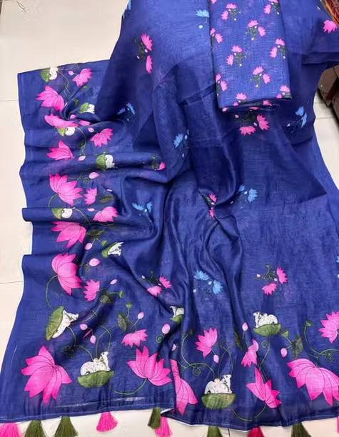 Linen Sarees are a popularly sought-after variant of the traditional saree, a garment worn by Indian women. Despite having traditional roots, this elegant outfit has inspired designers and runway fashion worldwide. Linen is a desired fabric owing to its lightweight, making it a comfortable and easily wearable fabric. It is suitable for Indian weather as it allows easy movement of air. It also has sweat-absorbing properties. Sarees made of linen fabric drape well because of their texture, giving you an elegant and ethereal look. Due to their versatility, sarees are worn at various events and occasions – formal dinners, family functions, cocktail parties, and weddings. You simply have to play around with different styles and jewellery to create the perfect ensemble suitable for the event. You can purchase linen sarees for special occasions like weddings, anniversaries, festivals, and birthdays or wear them to your office. Pure linen sarees can also be a thoughtful and excellent gift to give your loved ones. You may take your pick from any of the various brands available online such as Kara, Swastim, Taanti, Pink Floral, and Dakshin Grandeur, to name a few. You can shop for linen sarees online in colours and patterns of your choice. Price list last updated on 13-Oct-25.