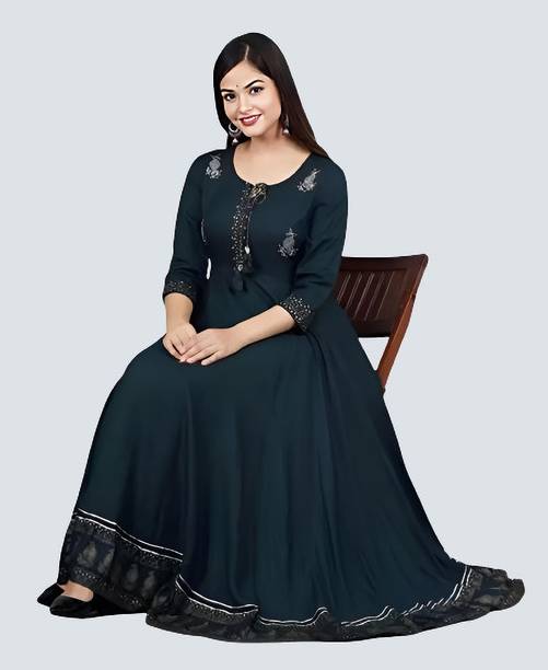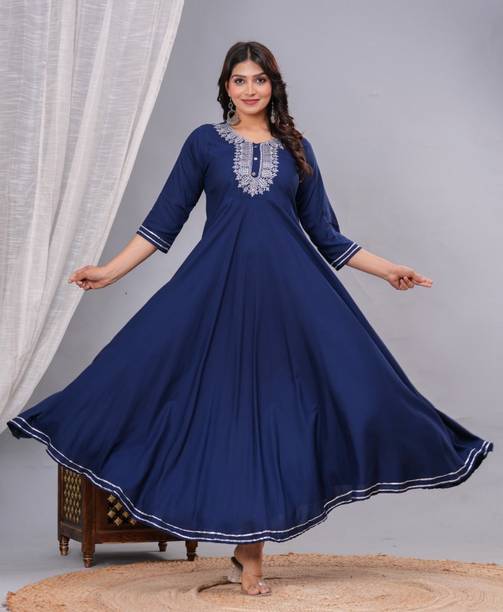 Make a stylish addition to your wardrobe with an exquisite Anarkali dress. This long and flowing garment exudes a timeless elegance that transcends seasons, making it versatile clothing for any occasion. Whether you're looking for a captivating ensemble for a special occasion or a statement piece that exudes your unique style, these trendy dresses offer a world of possibilities. Available in the latest designs and a diverse range of sizes and colours, you can effortlessly find the ideal fit and shade to complement your individuality. Customise your look further with an array of sleeve options, including long, short, and sleeveless variations and tailor your attire to the event's mood and your personal preference. Moreover, the beauty of these dresses lies in their intricate designs. Explore a captivating array of neck designs and patterns, from traditional motifs to contemporary styles, ensuring you find a dress that resonates with your taste. Choose your favourite designs by selecting some of the best options that the online collection offers. Discover the magic of this classic attire, available in a varied price range, and embrace its regal charm. Explore a wide range of Anarkali dresses online from various brands like Hiral Creation, Shree Disha, Khushi Handicrafts, Jevi Prints, Krishna Enterprises, and Wonder Villa Trendz.