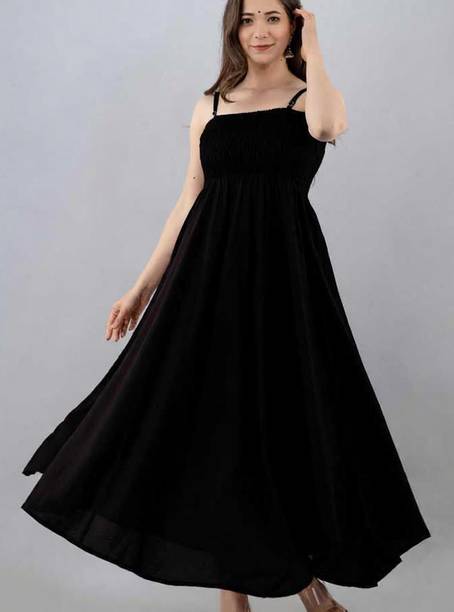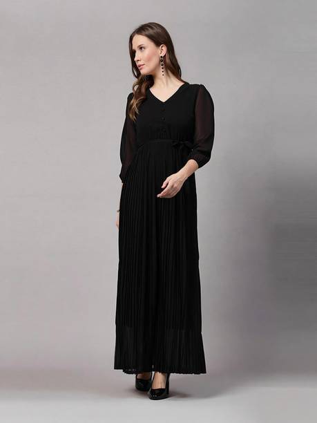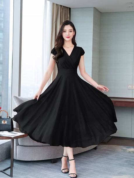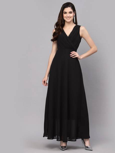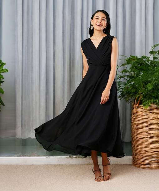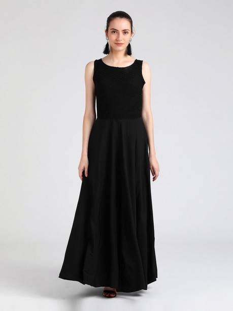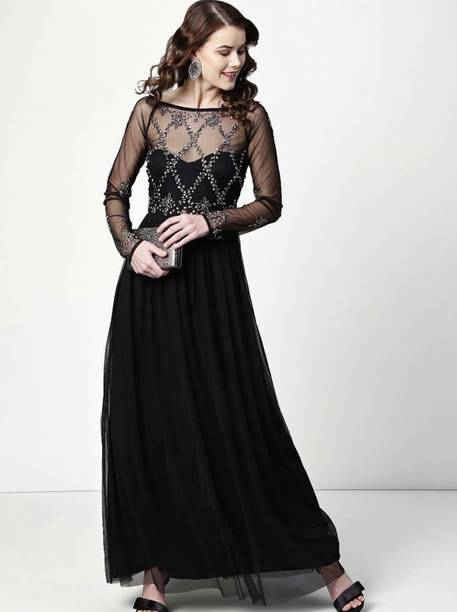 Explore your options for long black dresses online on popular shopping sites from various brands, such as Athena, Only, W, FabAlley, Biba, Allen Solly, Globus, Vero Moda and much more. You will not just find long black dresses, but also variations to the conventional black dresses in different patterns and combination of colors.