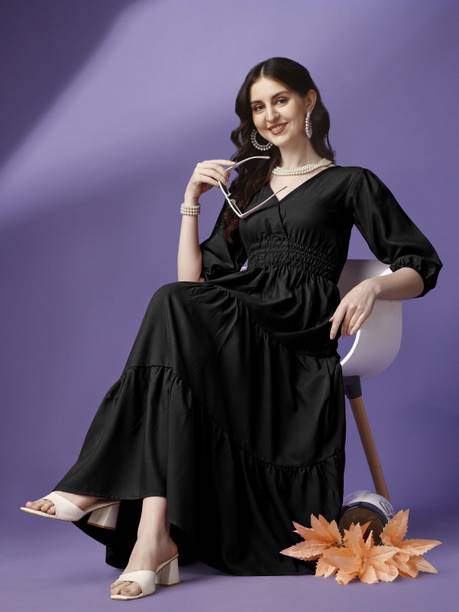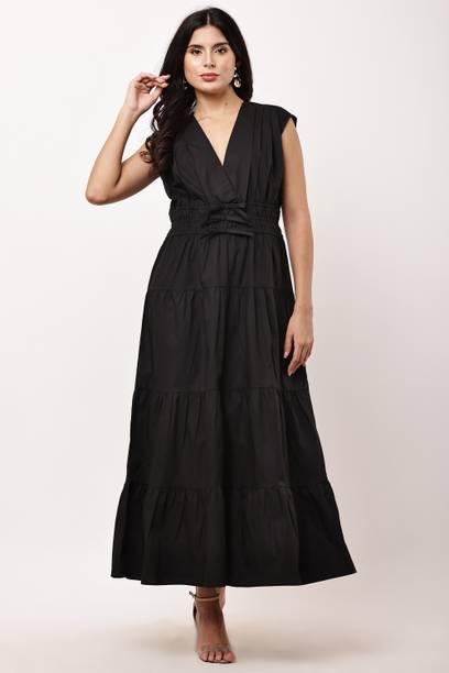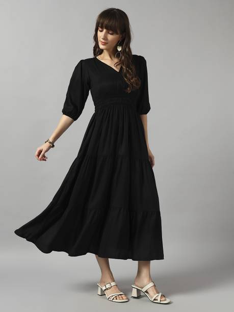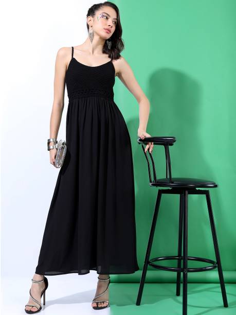 Formal occasions can include an office party or a client meeting. Being underdressed for such occasions can come off as aloof. So, make a great impression at such occasions by buying a long black dress from popular brands, such as Allen Solly, W, Vero Moda, Only and much more.