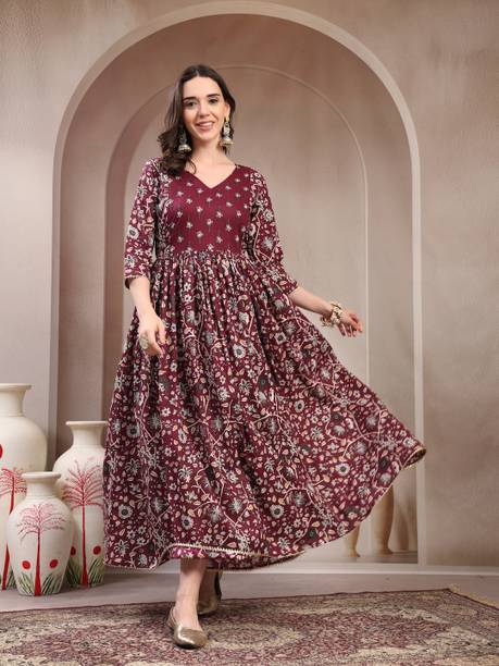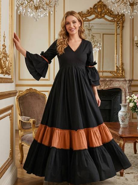 Do you want to create a stunning look at an upcoming party? If yes, exploring graceful long-frock models online can be a great idea. The designer maxi dresses radiate elegance and charm, making them a go-to choice for women who love to experiment with their styles. From bodycon, high-low styles, and attractive fit and flare designs to trendy ethnic outfits, a plethora of variants can be discovered online. The flowy silhouette of long frock models gives the wearer a feminine and flattering look, elevating the style quotient effortlessly. Whether you are attending a birthday celebration or have planned a brunch with friends, the latest gowns and full-length attires have always got you covered. As they are made from breathable materials like crepe, georgette, cotton blend, etc., you can ensure all-day comfort while looking your best. Pair the designer outfits with dangler earrings and a statement necklace to complete your gorgeous ensemble. Check the product description to learn more about the price ranges and offers available. Swipe and select from numerous colours like maroon, yellow, black, brown, and purple, among others. With access to online shopping, you can explore a diverse range of women’s clothing from brands like Miss Chase, Urbanic, Glossia, Shahee Libaas, Roadster, etc.