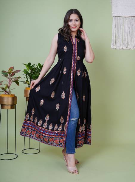 When it comes to long kurtis with front cut, there are a number of styles to choose from. From front open long kurtis and long straight kurtis to long cut kurtis and side slit kurtis, you will be spoilt for choice. There are front cut kurtis, single or double slit kurtis, and also, front open kurtis to add variety and style in your wardrobe. Also, you can choose from knee-length to ankle-length kurtis with slits. All these varieties and more are available online on discounts.