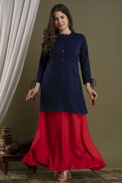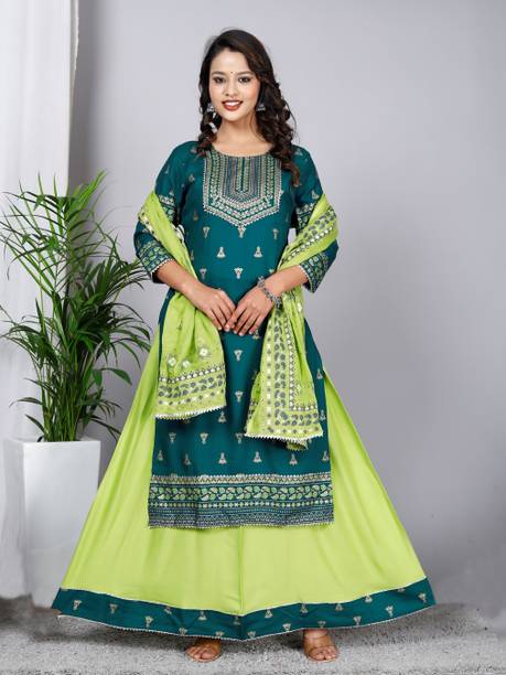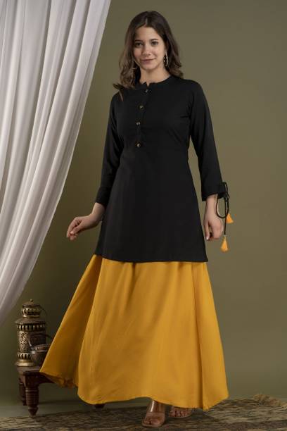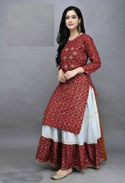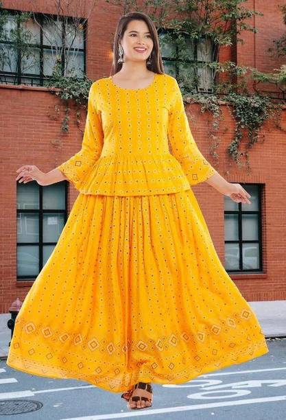 A long skirt with kurti can help create a versatile look and can be worn on many occasions, be it a casual events, festivities, or parties. This beautiful attire can be found in fabrics like crepe, silk, cotton, satin, and more in an array of tones, designs, and hues. You can create stunning looks by accessorising them with the right kind of jewellery, handbags, bags and heels. For festivals and special occasions, you can opt for a combination of silk or georgette top and a heavily embellished skirt to create a stunning look. For a casual event, mix and match the bottom and top in solid colours. Style up with a jacket to create a vibrant ensemble. You can even pair these dresses with multi-coloured dupattas. You can browse and buy the latest long skirts with kurtis options from brands like Shree Creation, YOYO FASHION, Ethnic Yard, DD's creation, Yashruti Fashion, and many more. Cotton, linen fabrics with prints like floral, applique are ideal to be worn in summers as they are breathable and absorb sweat. Silk, jacquard, and velvet are best suited for evening wear or during cool weather. Check out the range of long skirts with kurtis online and add them to the cart for doorstep delivery. The information you are reading has been last updated on 01-Nov-25.