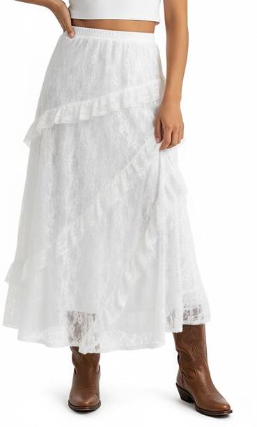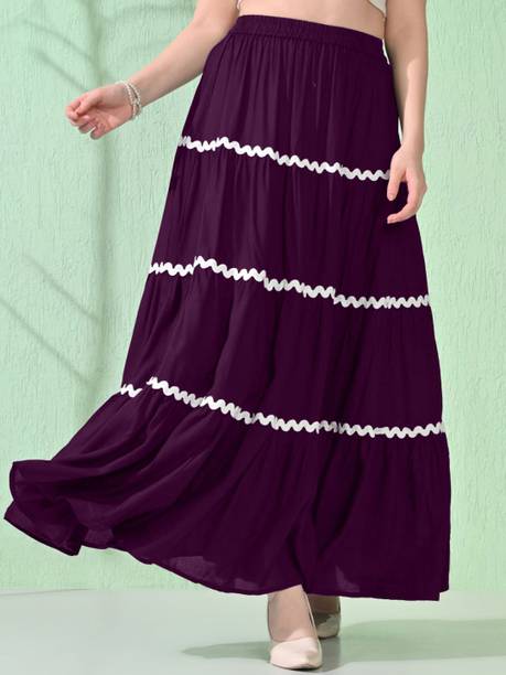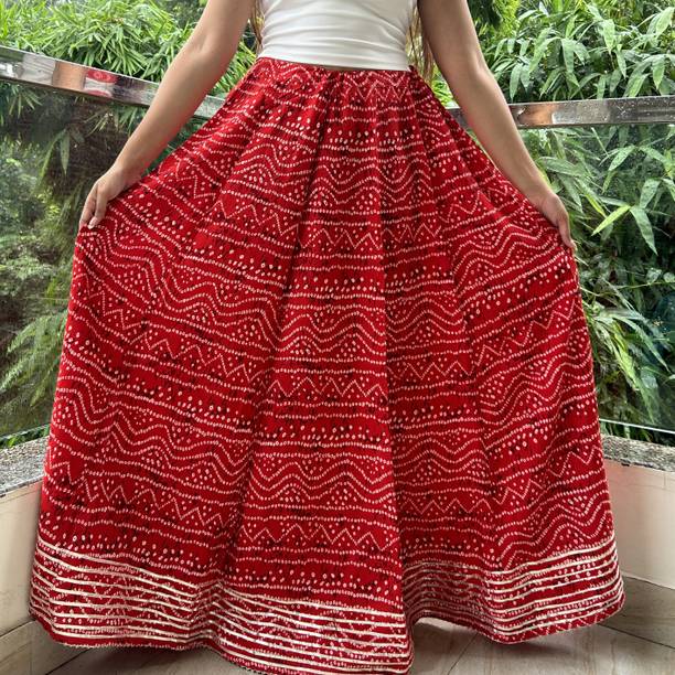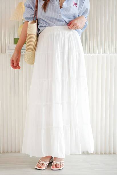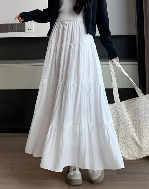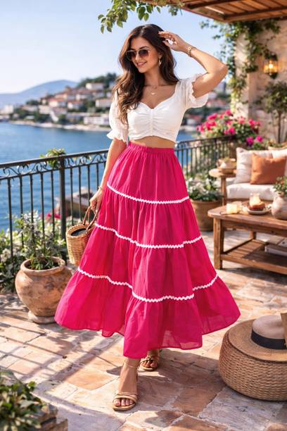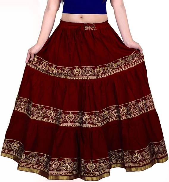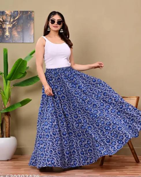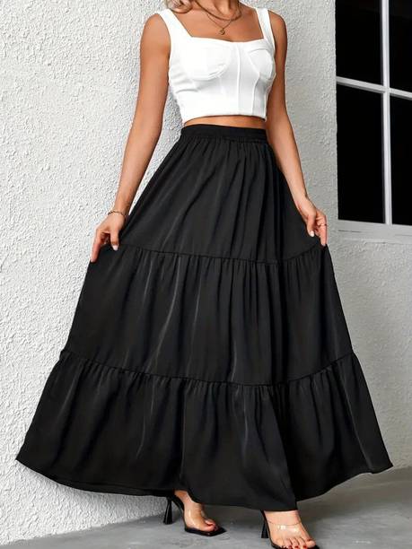 Long skirts are a wardrobe staple that looks stylish and are loved by fashionistas. You can pair these skirts with cami tops, tube tops, or slip tops. Search for skirts that can make you look elegant and stylish without much effort. Solid, chequered, floral print, washed, houndstooth, and abstract are some of the pattern options available online to match your style and occasion. For a semi-formal look, pair a button-down shirt with your skirt to look glamorous. To keep yourself comfortable, you can choose this garment in fabric options like denim, net, pure cotton, French crepe, acrylic blend, art silk, and more available online. You can wear matching accessories and footwear with your skirt to add a hint of sophistication and statement to your overall look. Brands like A J Lifestyle Co, Aadhya, AadiKhodal, Aaishvi, Aaliya Fashion, and others sell this attire in various designs and patterns. Channel your inner goddess by pairing a matching crop top with this outfit. Types of skirts like flared, regular, pleated, pencil, A-line, straight, and others are available online and you can choose the one that matches your personality. All it takes is a long skirt, a matching top, and a pair of glam heels to pull off a fab attire.