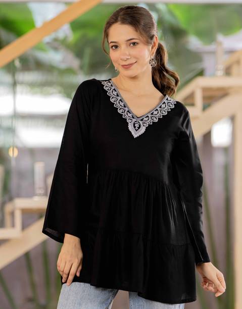 With soaring high temperatures, it is essential to wear easy, breezy, and comfortable clothing. If you want to revamp your everyday wardrobe, then long tops for women are a fresh alternative to a simple tee. There is something for every mood and occasion at the best prices, ranging from tops with different styles, patterns, lengths, and fabrics. With such an extensive range of trendy patterns, colours, and designs, you can style like the fashionista you always wanted to be! Be it for a regular day at work, a casual hangout with friends, or to layer it underneath your jackets, the possibilities of styling tops are endless. Choose from the latest long tops for women’s new and trending patterns like trapeze tops, peplum tops, oversized shirt styles, kaftan tops, high low tops, asymmetric tops, and more. Pair them with your denim and shoes for a relaxed, laid-back look. For a more put-together ensemble, you can pair it with well-fitted leggings, heels, and accessorise as per your liking. Long tops for women are pretty much a staple in any woman’s wardrobe. Grab exciting deals and offer to experiment with your style with varying fits and sleeves patterns like a dolman, batwing, cold-shouldered, cuffed, flared, or puffed sleeves. Checkout the vast collection from brands like FLEXIMAA, POPWINGS, SELVIA, PUMA, HARPA, and many more. The information you are reading has been last updated on 31-Dec-25.