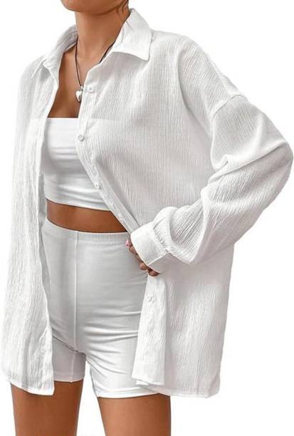 Loose shirts for women are the perfect essentials to get you through the summer into the fall. Shirts with a loose fit are back in style, with additional colour and styling options. These shirts can be dressed up or dressed down and can be donned for any event. They are a must-have for every girl's summer wardrobe and come in a variety of fabrics, including cotton, viscose, poly georgette, cotton mix, and polyester. Flowy shirts have become a wardrobe staple that goes practically with anything. They exude a comfortable, laid-back vibe, which enhances their appeal. Abstract art prints, solid patterns, quotations, and even pop-culture-themed designs are readily accessible. To get a trendy cool-girl style, pair them with high-waisted denim or shorts. Pair an oversized shirt with leggings and flip-flops for a comfy but stylish casual outfit. The flowy shirt will always be a style essential, even if fashion trends shift. Explore the latest loose shirts for womens’ new collection online to get the best prices and offers. Brands such as Chimpaaanzee, Vero Moda, Kazo, Bewakoof, The Dry State, and many more have an extensive collection of loose shirts for women online. So, buy these tops online and give your look a stylish boost this season. The information you are reading has been last updated on 20-Apr-26.