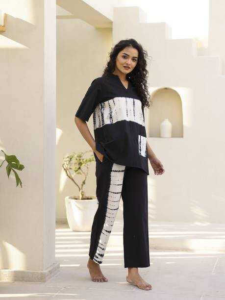 Loungewear is the ultimate piece of comfortable clothing. Stylish, hip, and versatile, it can work as both day and nightwear. It can even work for a casual outing. Available in cool prints, stripes, checks, block colours, popular character prints, you can pick your favourite pattern and flaunt your style. You can find the latest loungewear in sets, such as shorts and T-shirts, shorts and bush shirts, pyjamas and bush shirts, pyjamas and T-shirts, calf-length gowns, mid-length gowns, etc. You can also pick the bottom wear, be they pyjamas, three quarters, shorts, according to your tastes and comfort levels. You can choose from multiple colours and fabrics. Material choices available across the e-store are cotton, satin, velvet, hosiery, synthetic blends, and many more. You can also choose from multiple attractive patterns available online. Select from abstract, animal prints, applique, cartoons, checkered, chevron, and many more. Ensure you look stylish all the time, whether you are at home or out for a casual gathering. Pick your favourite Loungewear from popular brands like Vixenwrap, Van Heusen, Dreamz by Pantaloons, PRETTY LOVING THING, and many more. Choose one or a combo of these stylish pieces of comfortable wear. You can place an order online and get your favourite clothes delivered to your doorstep without any hassles. The information you are reading has been last updated on 08-Oct-25.