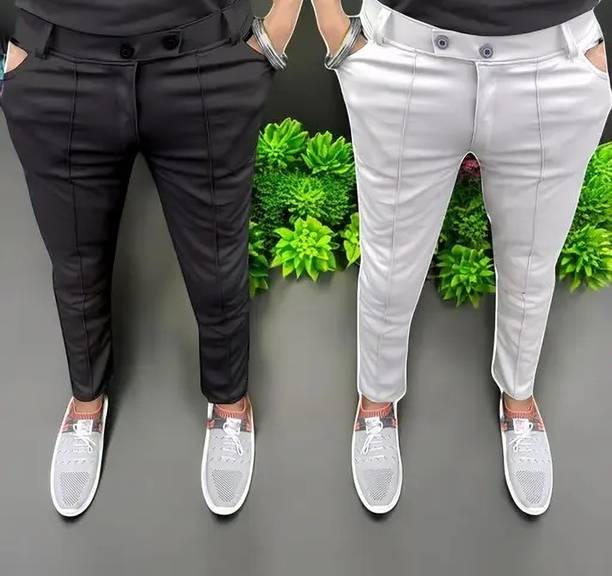Looking for comfortable, extremely stretchy, and soft trousers? If so, browse through a wide range of lycra pants available online. Dive into the pool of lycra trousers and choose from countless products according to your needs. These spandex bottoms are your one-stop solution with quality fabric that fits you perfectly. Ideal for both men and women, these trousers are suitable for any occasion, including casual, semi-formal, work from home, loungewear, etc. They provide you with a good fit, freedom to move, shape retention, fewer wrinkles, are lightweight, and are moisture absorbents. Numerous types of lycra pants are available for daily bottomwear essentials, like casual trousers, formal, peg, tailored, anti-fit, bootcut, joggers, chinos, parallel, cropped, cigarette trousers, and many more. These pants are made with varieties of high-quality fabrics, like lycra blend, cotton satin, and viscose blend, cotton satin lycra blend, polyester etc. You can choose from various themes, like checks, monochrome, military prints, pleated, geometric prints, tartan checks, etc., in fits including slim, regular, skinny, relaxed, tapered, etc. Shop for lycra pants online from top brands including Allen Solly, PETER ENGLAND, U.S. POLO ASSN., VAN HEUSEN, INDIAN TERRAIN, and more. Add them to your shopping cart for doorstep delivery.