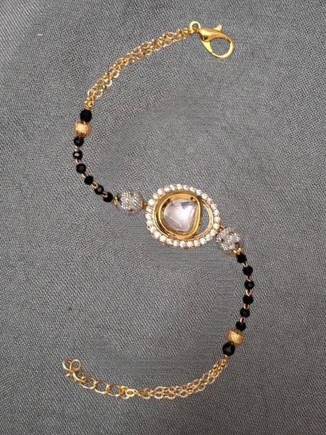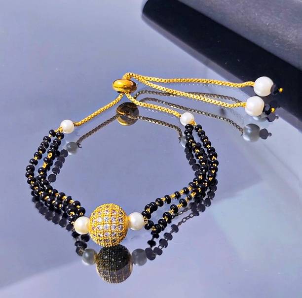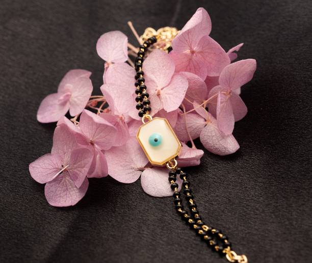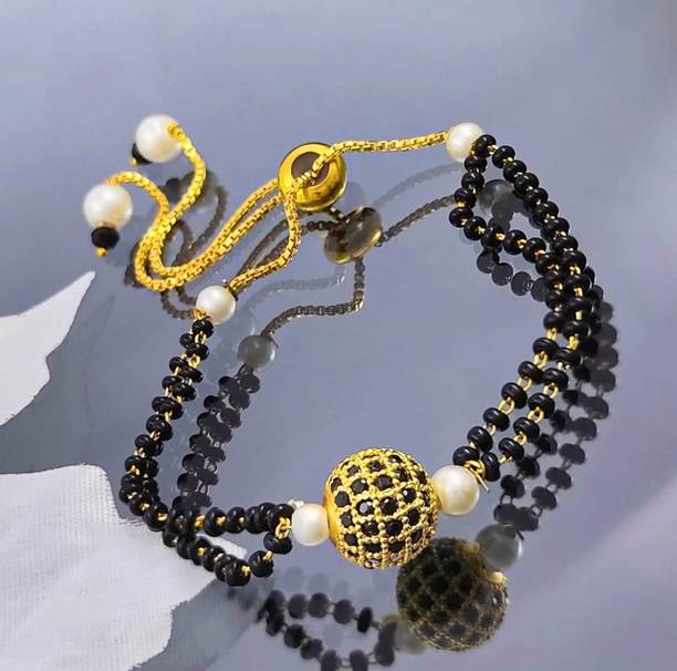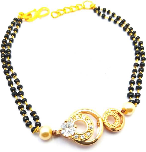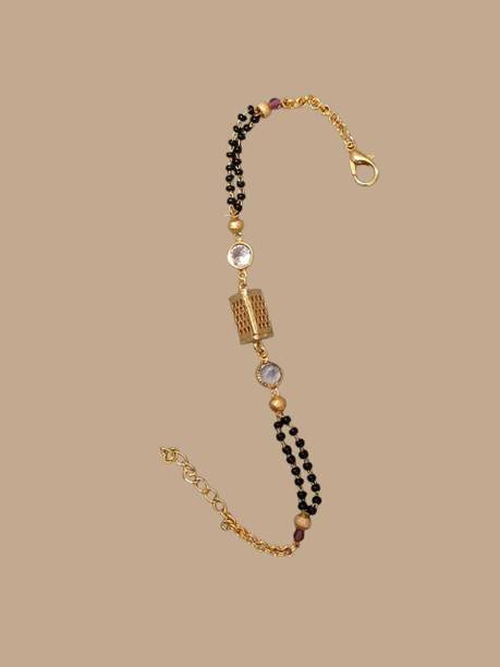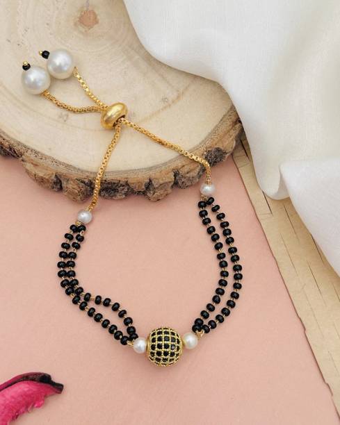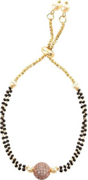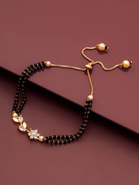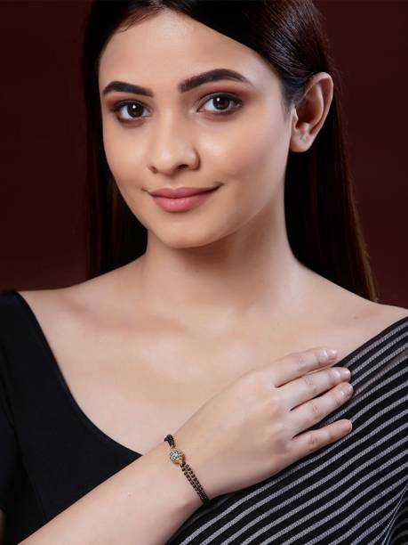 A mangalsutra bracelet is a contemporary twist to the traditional jewellery worn by most married women. Available in multiple colours, styles, and materials, these bracelets not only look good with most outfits but also make a statement. Check out the collection of the latest mangalsutra bracelets online and adorn your wrists with some classic jewellery pieces. You can choose from different materials for the bracelet of your choice. Choose from acrylic, alloy, brass, copper, crystal, fabric, and more. You can opt for a contemporary bracelet or an ethnic one depending on your requirements and tastes. These bracelets come with different kinds of embellishments that cater to different tastes. Choose from different gemstones like crystal, cubic zirconia, diamonds, mother of pearl, peridot, ruby, zircon, and more. You can wear these bracelets to all kinds of occasions, be it ethnic parties, festive occasions, or wedding ceremonies. Pick your favourite mangalsutra bracelet from trusted brands such as Sukkhi, 3SIX5, MEENAZ, ZENEME, M4U Fashion, and many more. Select from several attractive designs and add to your glamour quotient effortlessly. Take your pick from the attractive collection and get your favourite bracelet delivered to your doorstep without any hassles. The information you are reading has been last updated on 30-Dec-25.