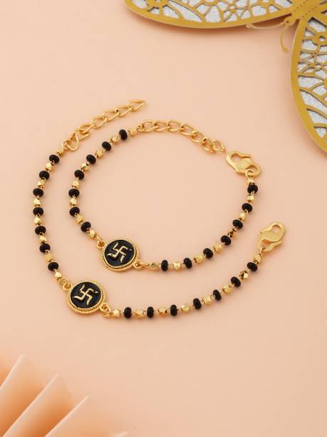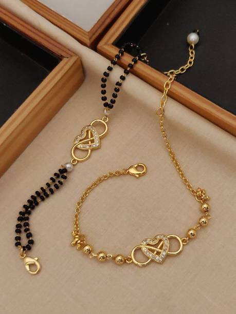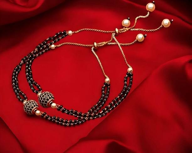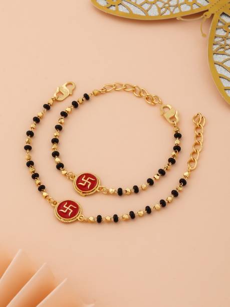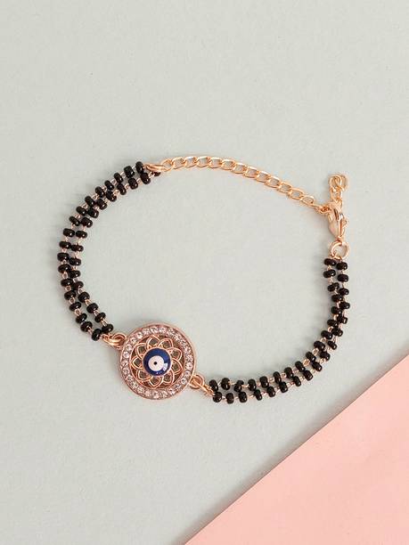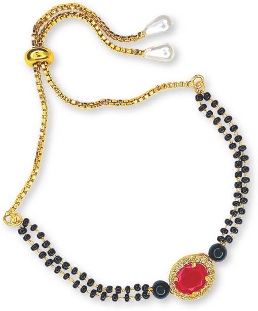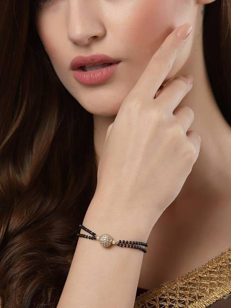 A mangalsutra bracelet is a contemporary twist to the traditional jewellery worn by most married women. Available in multiple colours, styles, and materials, these bracelets not only look good with most outfits but also make a statement. Check out the collection of the latest mangalsutra bracelets online and adorn your wrists with some classic jewellery pieces. You can choose from different materials for the bracelet of your choice. Choose from acrylic, alloy, brass, copper, crystal, fabric, and more. You can opt for a contemporary bracelet or an ethnic one depending on your requirements and tastes. These bracelets come with different kinds of embellishments that cater to different tastes. Choose from different gemstones like crystal, cubic zirconia, diamonds, mother of pearl, peridot, ruby, zircon, and more. You can wear these bracelets to all kinds of occasions, be it ethnic parties, festive occasions, or wedding ceremonies. Pick your favourite mangalsutra bracelet from trusted brands such as Sukkhi, 3SIX5, MEENAZ, ZENEME, M4U Fashion, and many more. Select from several attractive designs and add to your glamour quotient effortlessly. Take your pick from the attractive collection and get your favourite bracelet delivered to your doorstep without any hassles. The information you are reading has been last updated on 22-Feb-26.