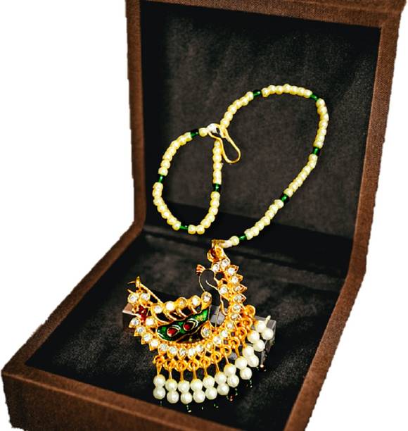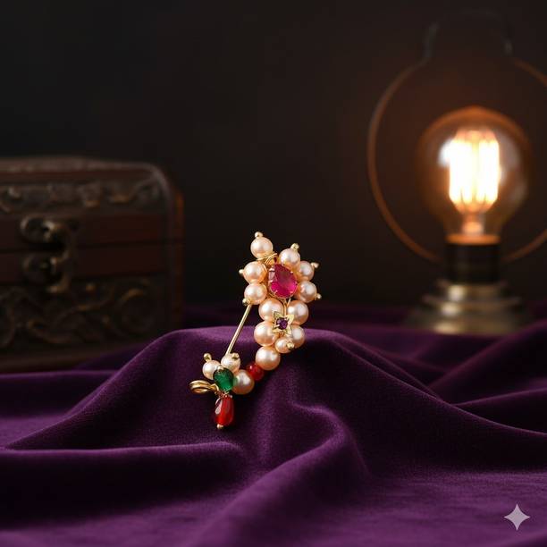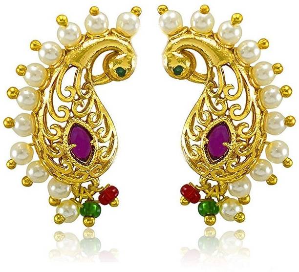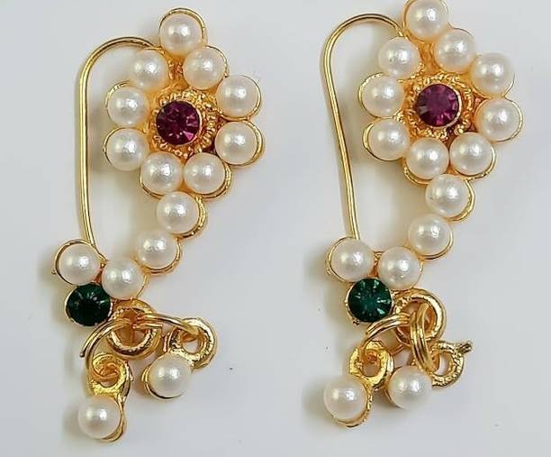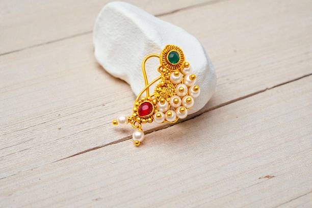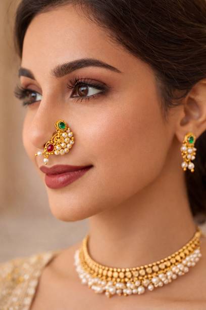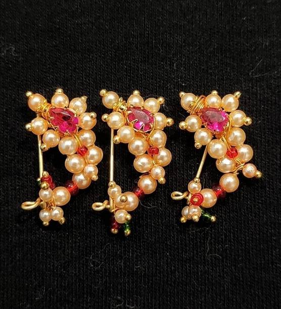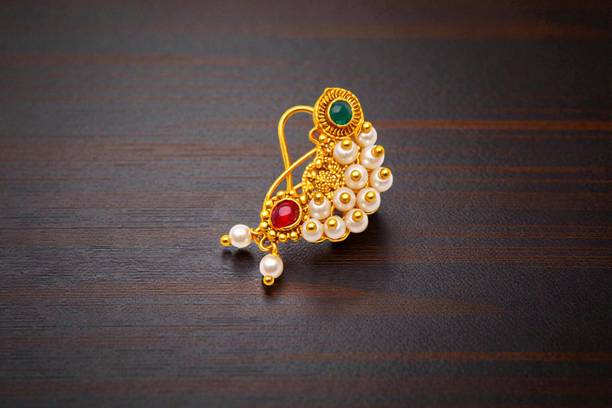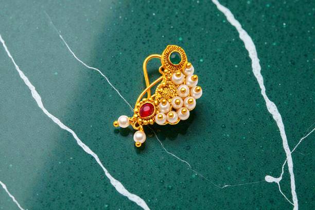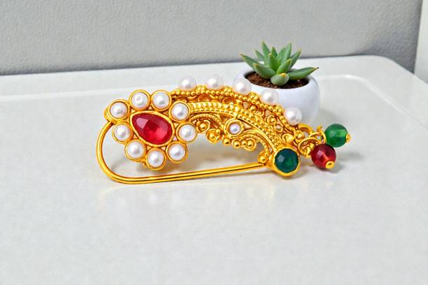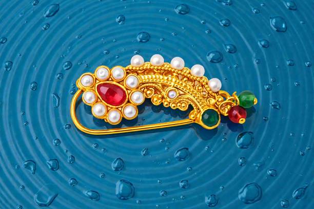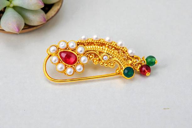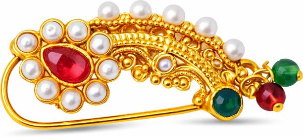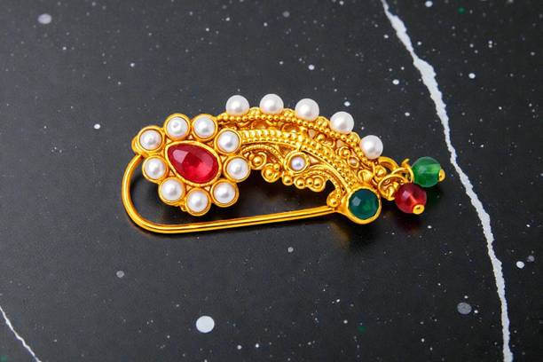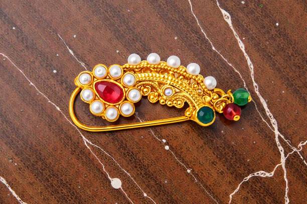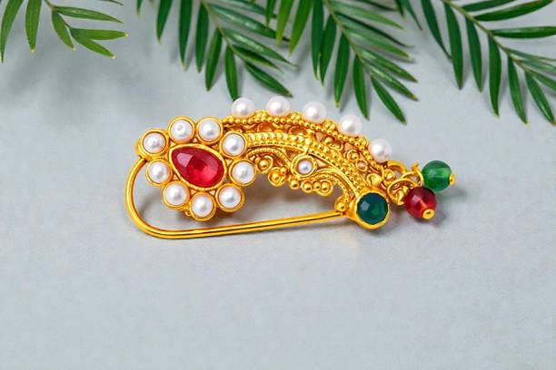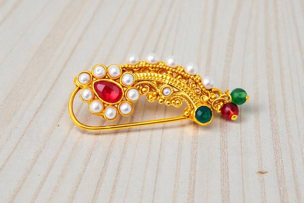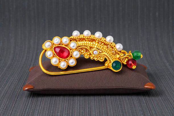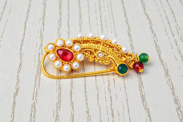 This is one of the most attractive and beautiful pieces of Marathi ethnic jewellery that is worn during weddings and other auspicious occasions. These nose rings are studded with pearls, pink, green, red, or white stones to complement the bright and beautiful nauvari sarees. There are different styles of Naths that you can order online and get them delivered to your home. A Nath is also a piece of essential bridal jewellery.