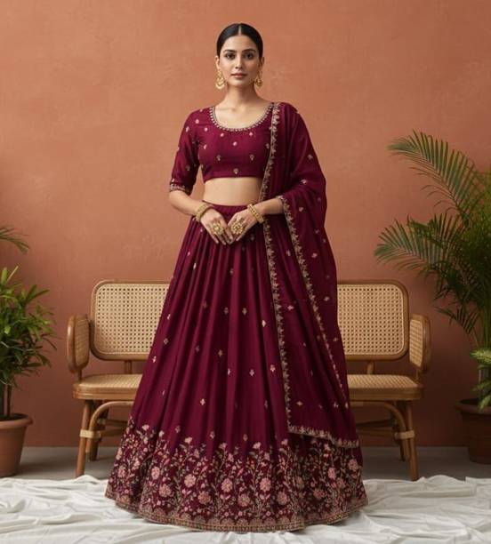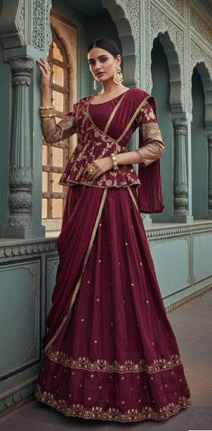 A beautiful maroon bridal lehenga is a quintessential outfit for Indian brides. You deserve to look your best on your wedding day, and a bridal lehenga in the right colour and style does the trick. The maroon colour is loved by most brides, as it flatters the Indian skin tone. It is neither too bright nor too dull. It has a beautiful hue that illuminates your appearance. A regal and flared maroon bridal lehenga in golden thread work and intricate embroidery would make any woman look like a princess. Opt for a flared lehenga with wide pleats, which add to the volume of the outfit. Wear this glamorous wedding lehenga and pair it with an equally stunning choli. Complete your wedding outfit with a delicate dupatta that adds to the grandeur of the attire. You can conveniently shop for your bridal dress from the comfort of your home. The size of the dress is not an issue as most of the bridal dresses available online are semi-stitched and in free size. They can be customised and stitched according to your preference. You can choose from materials like pure silk, artificial silk, net, rayon, georgette, and velvet. To shop for the latest maroon bridal lehenga, check out brands like aadhiya impex, LIMTORI, juhika hub, Shree Impex, and Dclothvilla.The information you are reading has been last updated on 10-Mar-26.