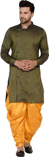 Indians love to flaunt their traditional attire on special occasions, festivals, and wedding ceremonies. Show off your desi style in a stylish kurta pyjama or dhoti kurta. No other Indian ensemble can match the versatility and comfort of a dhoti. During the Big Billion Days, we offer all sorts of celebration-worthy apparel. You can pick from different kurta variants like A-line, straight, high low, asymmetric, Pathani, or sherwani according to your style. Pair them with a complementing dhoti and a jutti or mojari to elevate your style statement. Explore the collection of men’s dhoti kurta sets available online and pick the one that best suits your style. The dhoti kurta for men is a traditional Indian garment worn in many regions in various styles. To keep up with the fashion choices and colours, we offer a plethora of options in the Big Billion Days sale. Comfort should be of utmost priority while buying your outfit. With the upcoming festival season and the exciting Big Billion Days offers, brace yourself to load your wardrobe with comfortable traditional wear. We have a wide range of fabrics like pure cotton, art silk, jacquard, polyester, viscose, satin, and a lot more. Check our Big Billion Days discounts and deals and shop from popular brands like AJJO MAJJO, ABH Lifestyle, SG RAJASAHAB, SOJANYA, Nawab-Saheb, Hangup, and others. Price list last updated on 20-Oct-25.