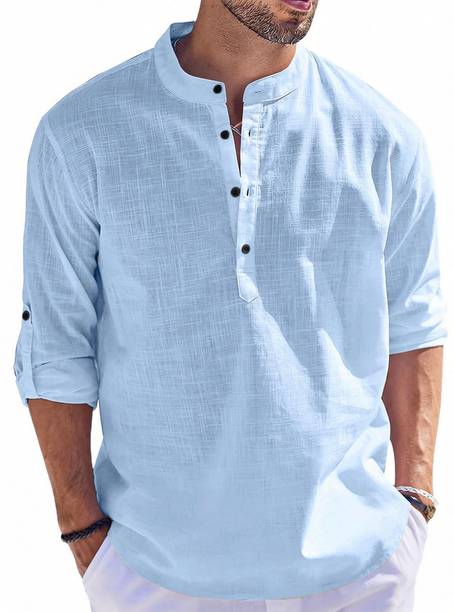 Spruce up your ethnic wardrobe with chic men’s kurta shirts available online. You can pair these kurtas with bottom wear like Jodhpuri, dhoti, churidaar, or salwar for a traditional touch, or wear them with denim, cargoes, or trousers for a modern and casual look. These men’s kurta shirts are available in a variety of lengths, patterns, and options ranging from vibrant and monochromatic solids to stripes, polka, and motifs. Explore from a plethora of prints in geometric patterns, abstract, block prints, kalamkari, ikkat, self-design or work like applique, embroidery, embellished, or variations like textured, washed, chikankari, and more. You can select mens’ kurta in varying lengths, cuts, and silhouettes, based on your preferences and the occasion. Kurtas in cotton, jute, linen, and blends are great for summers and casual occasions, while rich fabrics like silk, satin, jacquards are ideal for special events like weddings or festivals. Amp up the looks by adding an ethnic jacket or a matching stole. You can shop for these traditional and ethnic clothing from brands such as Manyavar, House of Pataudi, Indus Route by Pantaloons, MeLANgE, MADE IN THE SHADE, and more. The information you are reading has been last updated on 28-Dec-25.