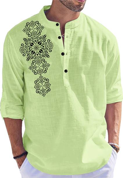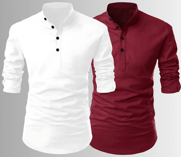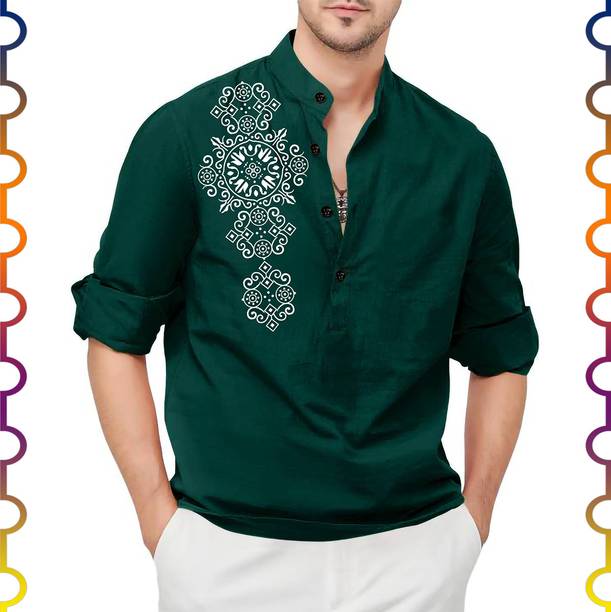 Spruce up your ethnic wardrobe with chic men’s kurta shirts available online. You can pair these kurtas with bottom wear like Jodhpuri, dhoti, churidaar, or salwar for a traditional touch, or wear them with denim, cargoes, or trousers for a modern and casual look. These men’s kurta shirts are available in a variety of lengths, patterns, and options ranging from vibrant and monochromatic solids to stripes, polka, and motifs. Explore from a plethora of prints in geometric patterns, abstract, block prints, kalamkari, ikkat, self-design or work like applique, embroidery, embellished, or variations like textured, washed, chikankari, and more. You can select mens’ kurta in varying lengths, cuts, and silhouettes, based on your preferences and the occasion. Kurtas in cotton, jute, linen, and blends are great for summers and casual occasions, while rich fabrics like silk, satin, jacquards are ideal for special events like weddings or festivals. Amp up the looks by adding an ethnic jacket or a matching stole. You can shop for these traditional and ethnic clothing from brands such as Manyavar, House of Pataudi, Indus Route by Pantaloons, MeLANgE, MADE IN THE SHADE, and more. The information you are reading has been last updated on 02-Jan-26.