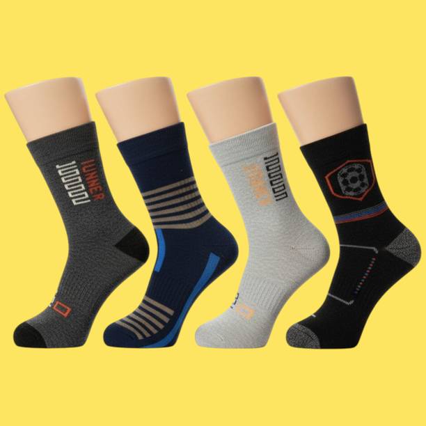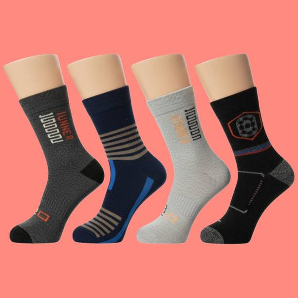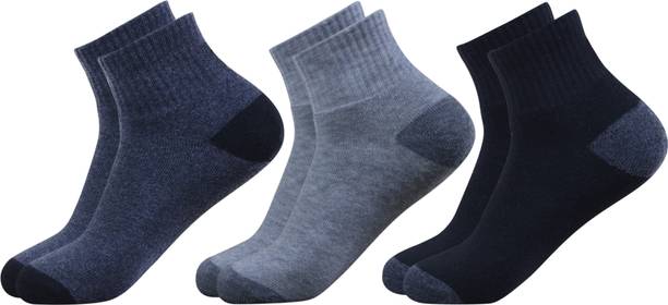 A right pair of men’s socks should fit around your heel and toes correctly, without extra folds or wrinkles. These socks are available in sizes starting from 3XS and are suitable for men, boys, and kids. Made from materials like cotton, polyester, wool, you can choose socks based on your needs and preferences. Check and compare the different types of socks for men from popular brands like ADIDAS, HRX by Hrithik Roshan, JACK & JONES, Happy Socks, JOCKEY, and many more. Wool, fleece, and velvet fabrics are suited for cold weather as they retain heat. Cotton and polyester are popular choices as they can be worn for all occasions and all year around. With colourful and vibrant patterns like animal prints, florals, laser-cut options, these are great footwear options for kids and adults alike. These accessories can be matched based on one’s outfit and shoes depending upon their length, colour, etc. The thigh highs stockings can be worn with boots or with short dresses or skirts as a style statement. The low cut and ankle length are best suited for casual shoes, while the calf-length ones are for formal events or professional settings. You can shop for men's socks online and add them to the cart for doorstep delivery.