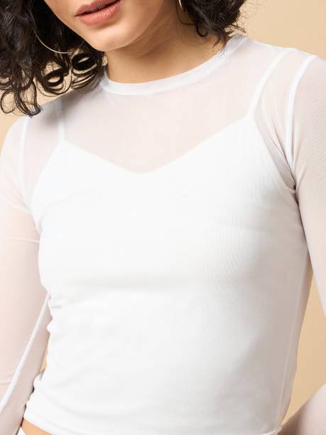 Make a statement with mesh crop tops. You can choose from a variety of mesh crop tops for your wardrobe like long mesh tops, fully cropped mesh tops, strappy mesh tops, solid ruched crop tops, and more from the latest mesh crop tops (new) collection. They come in attractive vibrant colours and are suitable for women of all ages. Check out the size chart with the product description to choose the perfect top for yourself. You can also choose different shapes and neck styles and elevate your jawline. Various sleeve types like full, three fourth, half, short, and sleeveless make sure you are comfortable wearing these tops throughout the day. Regular fit tops fit on the body like second skin and are ideal for casual wear. You can wear them to college, shopping, parties, or the beach. Choose from a vast collection of tops for women and girls from brands like SLISH, SASSAFRAS, SARVOPAREE FASHION, Martini, Urban Creation, and many more online. You can also get the benefits of various exciting offers and get the tops at the best price online. Purchase your favourite crop tops from the comfort of your home by placing your order today. The information you are reading has been last updated on 10-Oct-25.