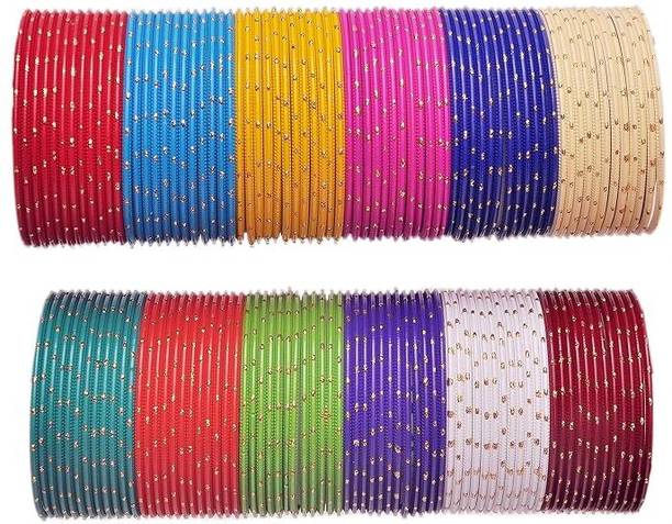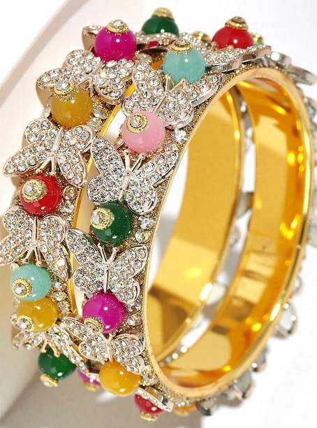 There are various durable and lightweight materials used for making bangles. You can buy metal bangles made of acrylic, alloy, aluminium, glass, copper, brass, crystal, etc. The durability, weight, and maintenance of bangles depend on the metal it is made of. Also, the color and even designs of this jewellery depend on the metal. Metal bangles are available in different sizes to fit the slender wrists of kids, girls, and women.