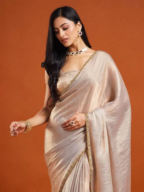 Sarees are timeless fashion wear, and adorning a metallic saree helps you exude glamour and grace. Sarees in gold metallic shades not only add shimmer to your overall look but also give you a royal feel. You can also choose a liquid molten silk saree in silver for a flattering look, especially on Indian skin tones. For a festival or family occasion, you can go for a Kanjeevaram saree or a woven raw silk saree to look your regal best, while keeping in touch with your culture. Any woman building a wedding trousseau should definitely add a fashion staple like a magnificently embroidered net saree. For an attractive reception look, pick a solid satin blend metallic saree. For a more rustic-inspired look, pair the saree with chunky silver or copper jewellery. Pick from the vast collection of ethnic sarees like Banarasi polycotton or Paithani jacquard saree with embellished Zari border. While picking a saree for daily wear, choose a georgette chiffon blend saree for a comfortable yet elegant ensemble. Browse through the collection of the latest metallic sarees online from popular brands like Lorofy, Pochampally Saree, Saara, Glowmorous, Villagius, Palav Fabrics, and many others. The information you are reading has been last updated on 27-Feb-26.