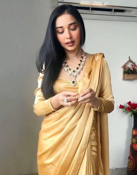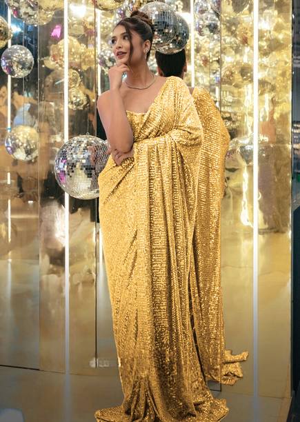Sarees are timeless fashion wear, and adorning a metallic saree helps you exude glamour and grace. Sarees in gold metallic shades not only add shimmer to your overall look but also give you a royal feel. You can also choose a liquid molten silk saree in silver for a flattering look, especially on Indian skin tones. For a festival or family occasion, you can go for a Kanjeevaram saree or a woven raw silk saree to look your regal best, while keeping in touch with your culture. Any woman building a wedding trousseau should definitely add a fashion staple like a magnificently embroidered net saree. For an attractive reception look, pick a solid satin blend metallic saree. For a more rustic-inspired look, pair the saree with chunky silver or copper jewellery. Pick from the vast collection of ethnic sarees like Banarasi polycotton or Paithani jacquard saree with embellished Zari border. While picking a saree for daily wear, choose a georgette chiffon blend saree for a comfortable yet elegant ensemble. Browse through the collection of the latest metallic sarees online from popular brands like Lorofy, Pochampally Saree, Saara, Glowmorous, Villagius, Palav Fabrics, and many others. The information you are reading has been last updated on 09-Oct-25.